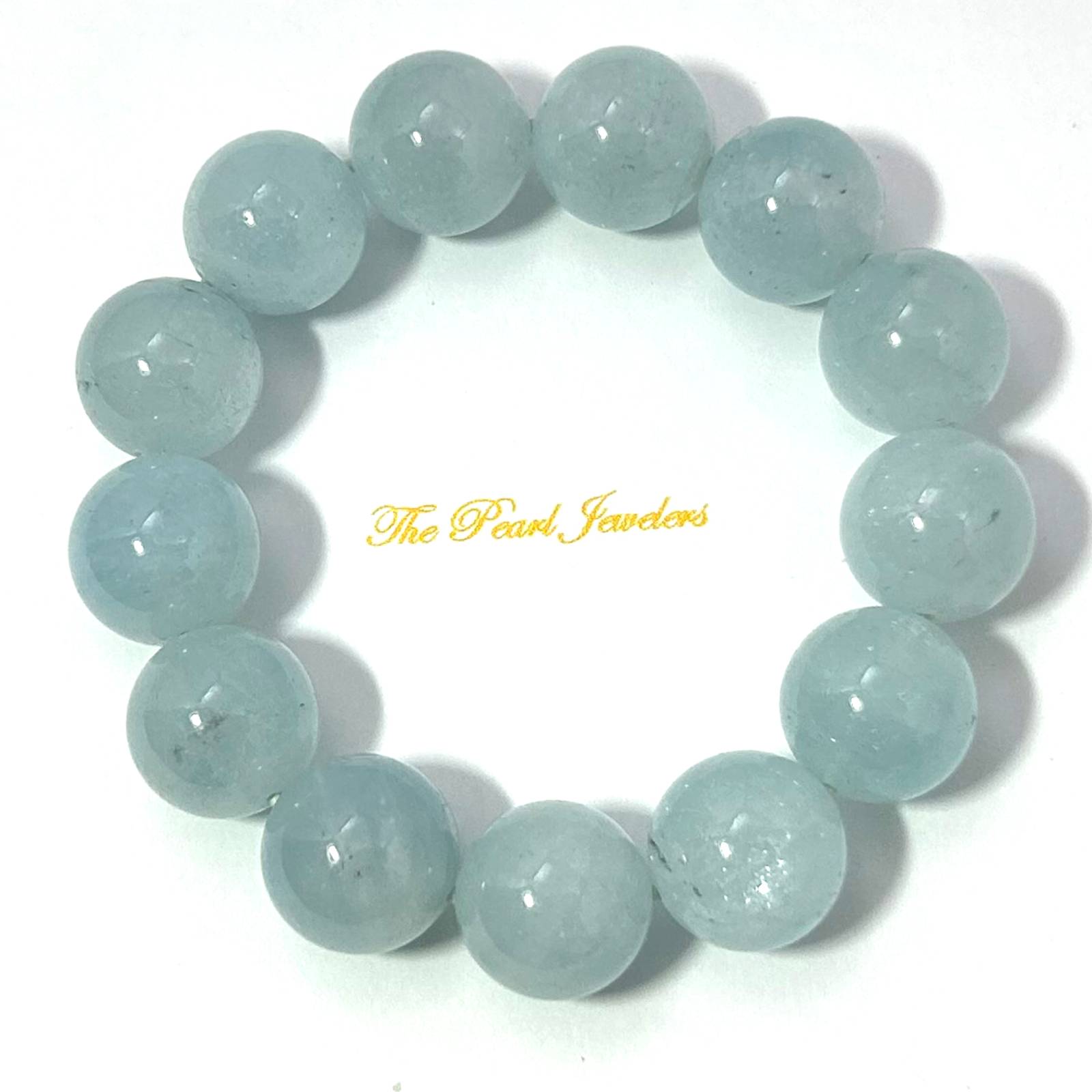 This handcrafted 14mm aquamarine bracelet blends elegant blue clarity and calming strength for balance, clarity, and style.