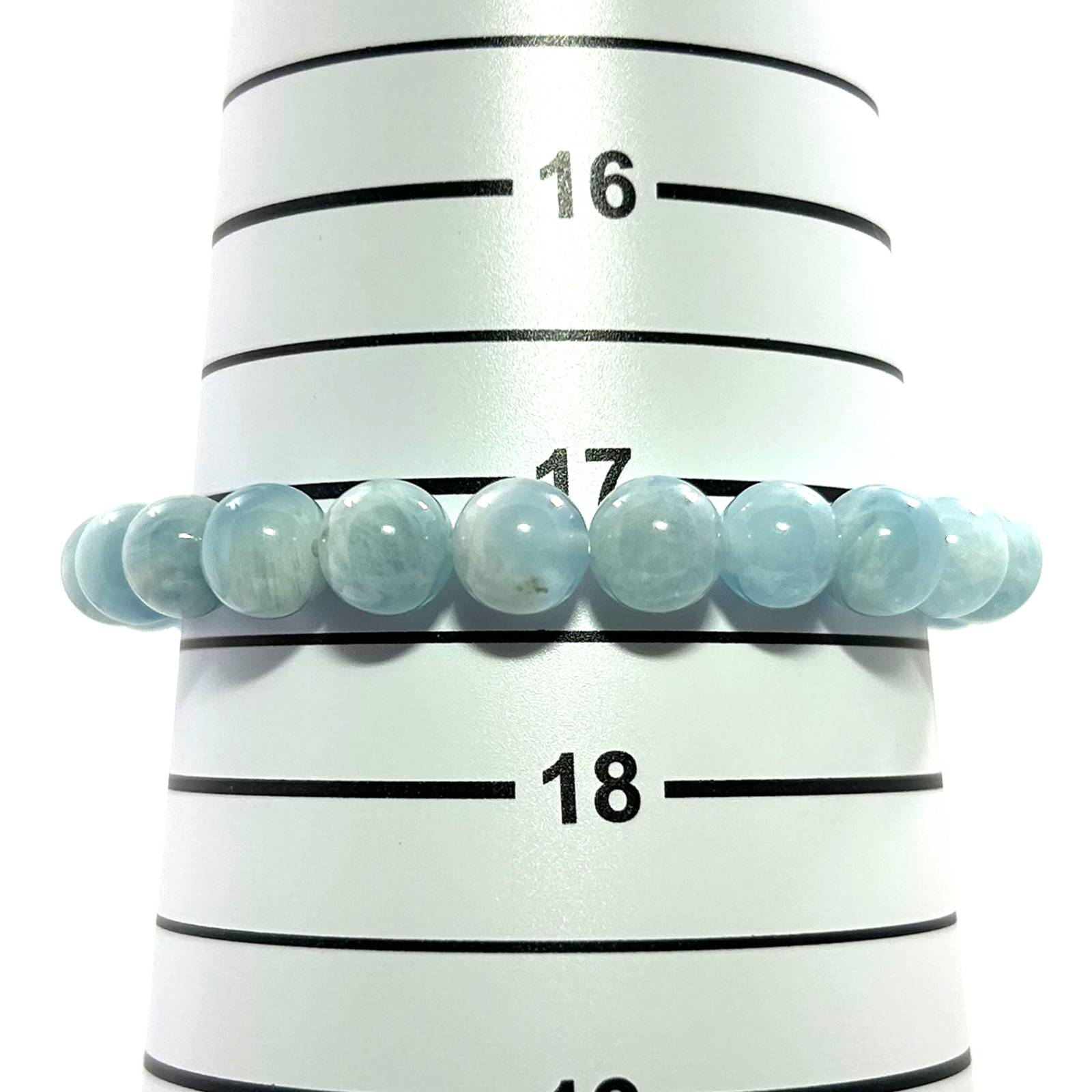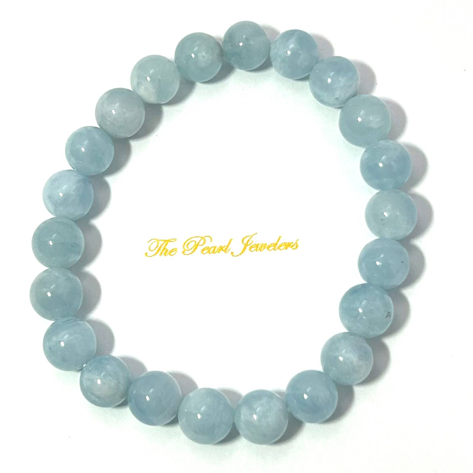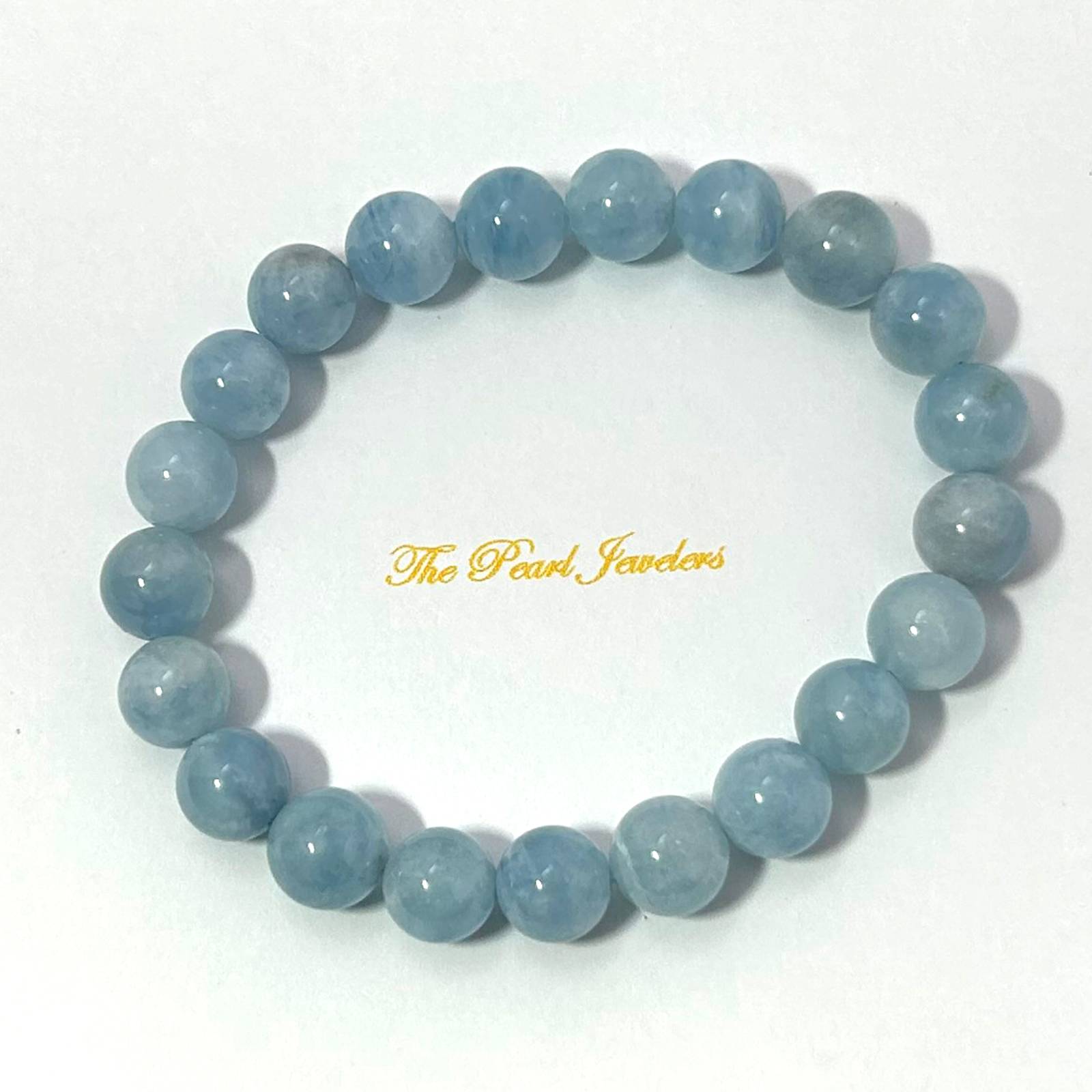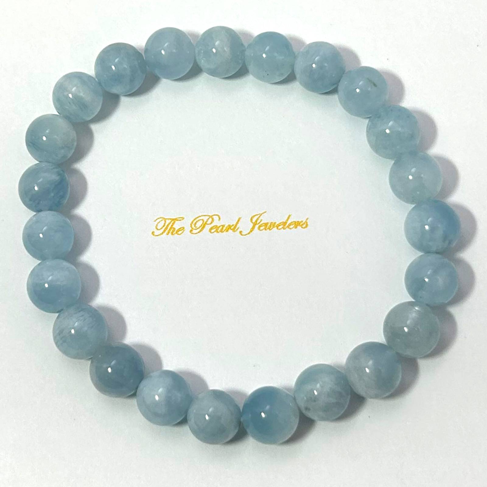 Crafted from 8.5โ€“9mm aquamarine beads, this stretch bracelet supports emotional healing and inner peace.