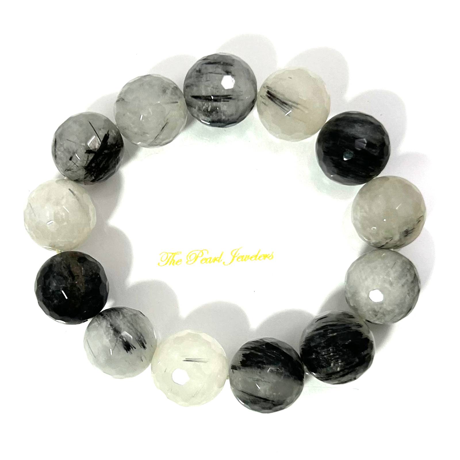 Handcrafted with 16mm mixed black rutilated quartz beads, this bracelet offers grounding energy and everyday good fortune.