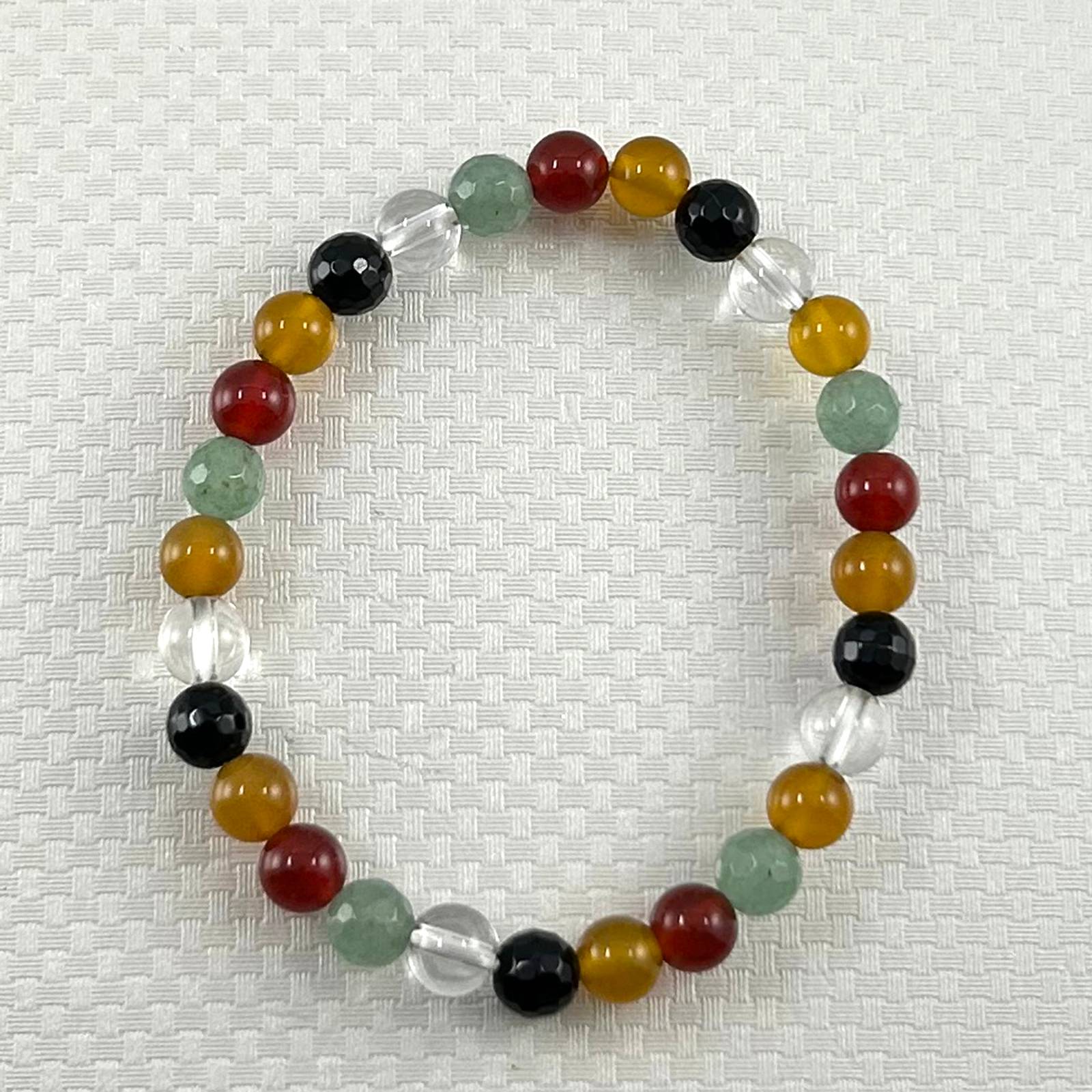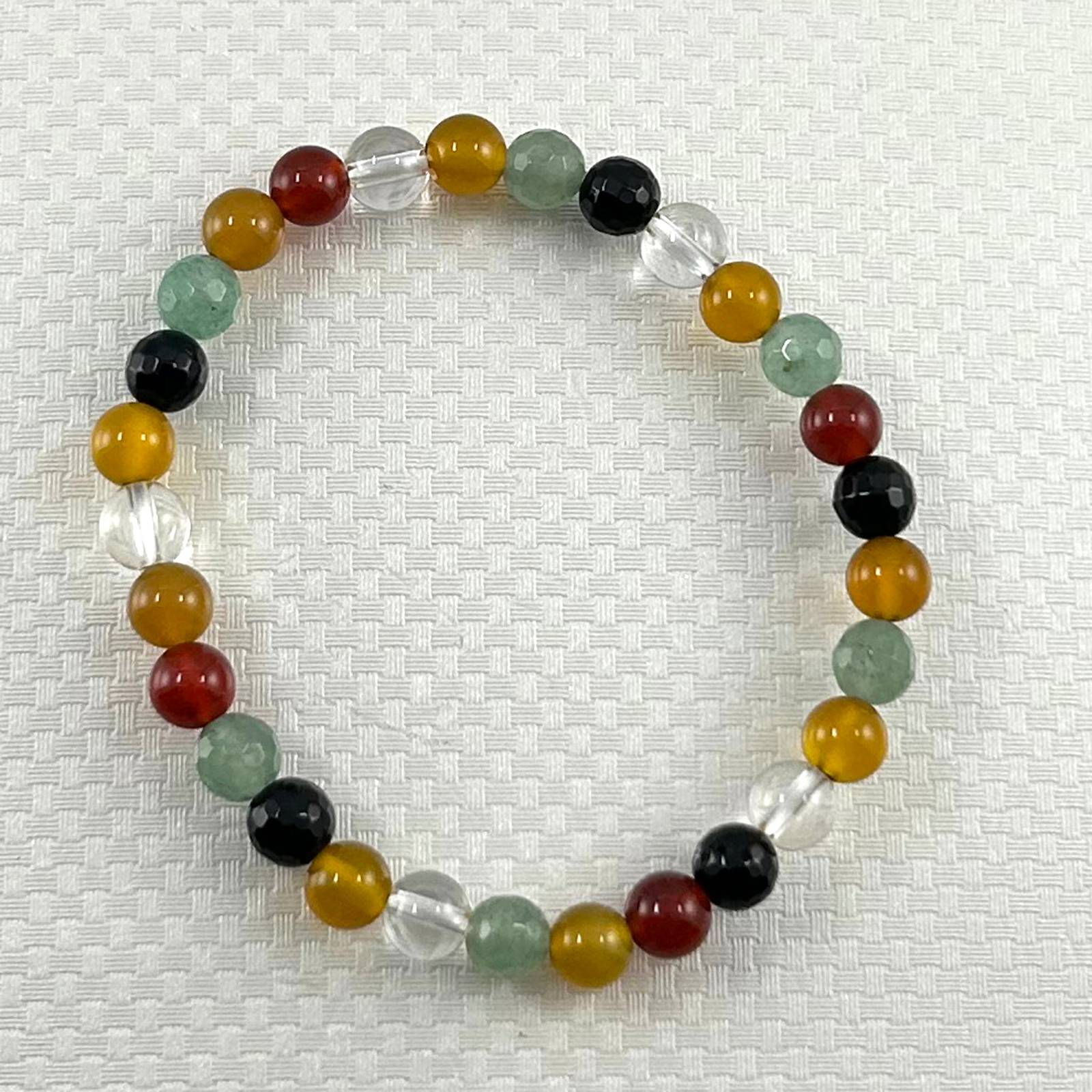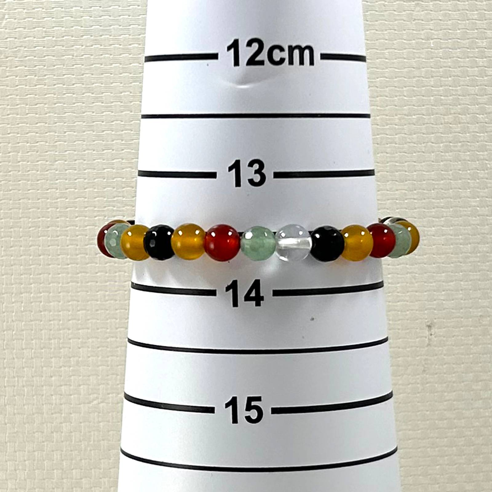 This lightweight stretch bracelet is made from 6mm multicolor agate beads—perfect for layering or solo wear.