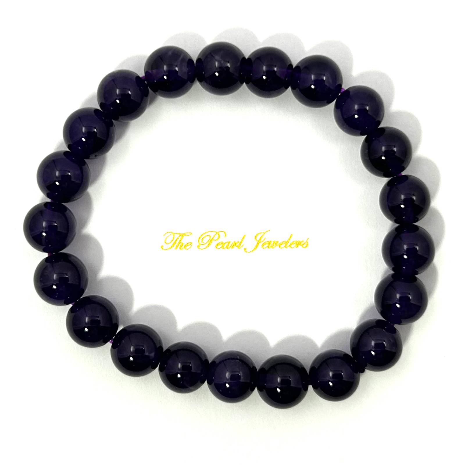This elastic bracelet features 8.5–9mm dark amethyst beads—ideal for spiritual balance and daily wear.