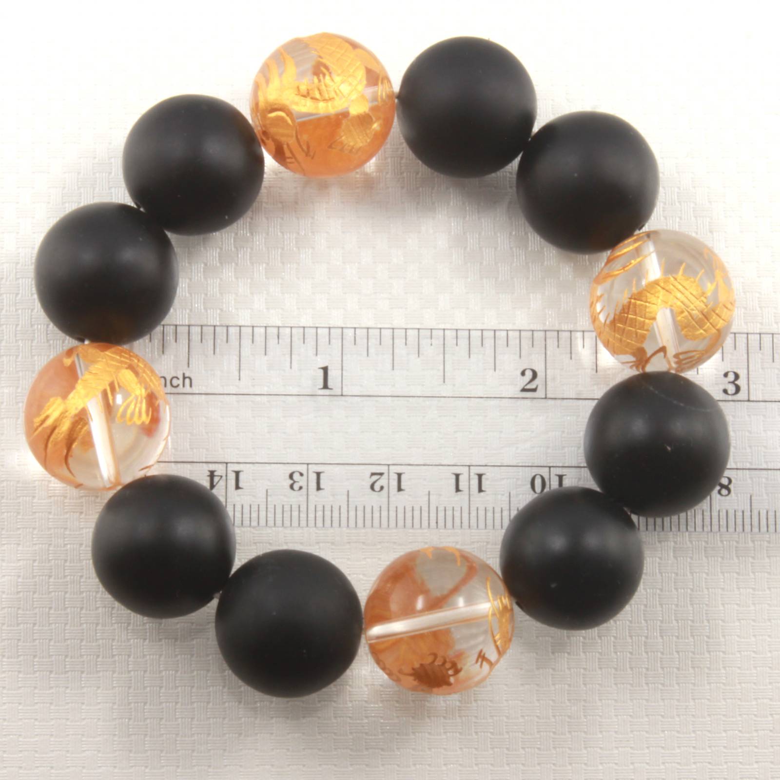 A bold 18mm bracelet combining eight Bian stones and four clear crystal dragons—crafted to promote clarity and new beginnings.