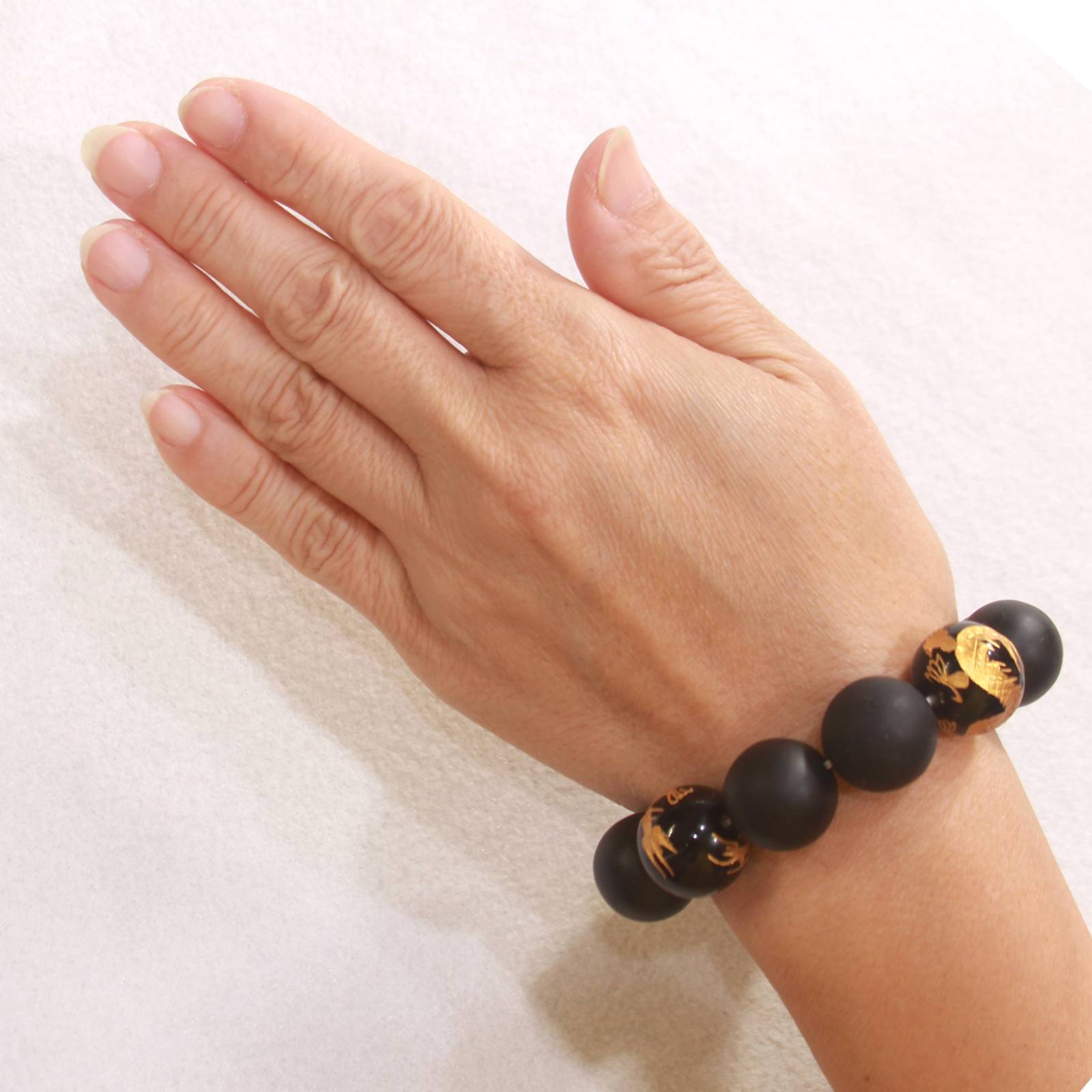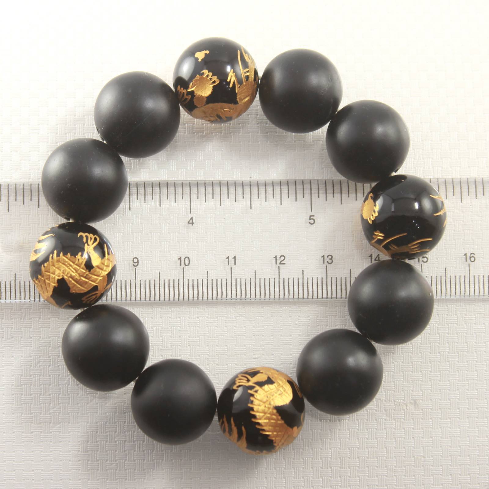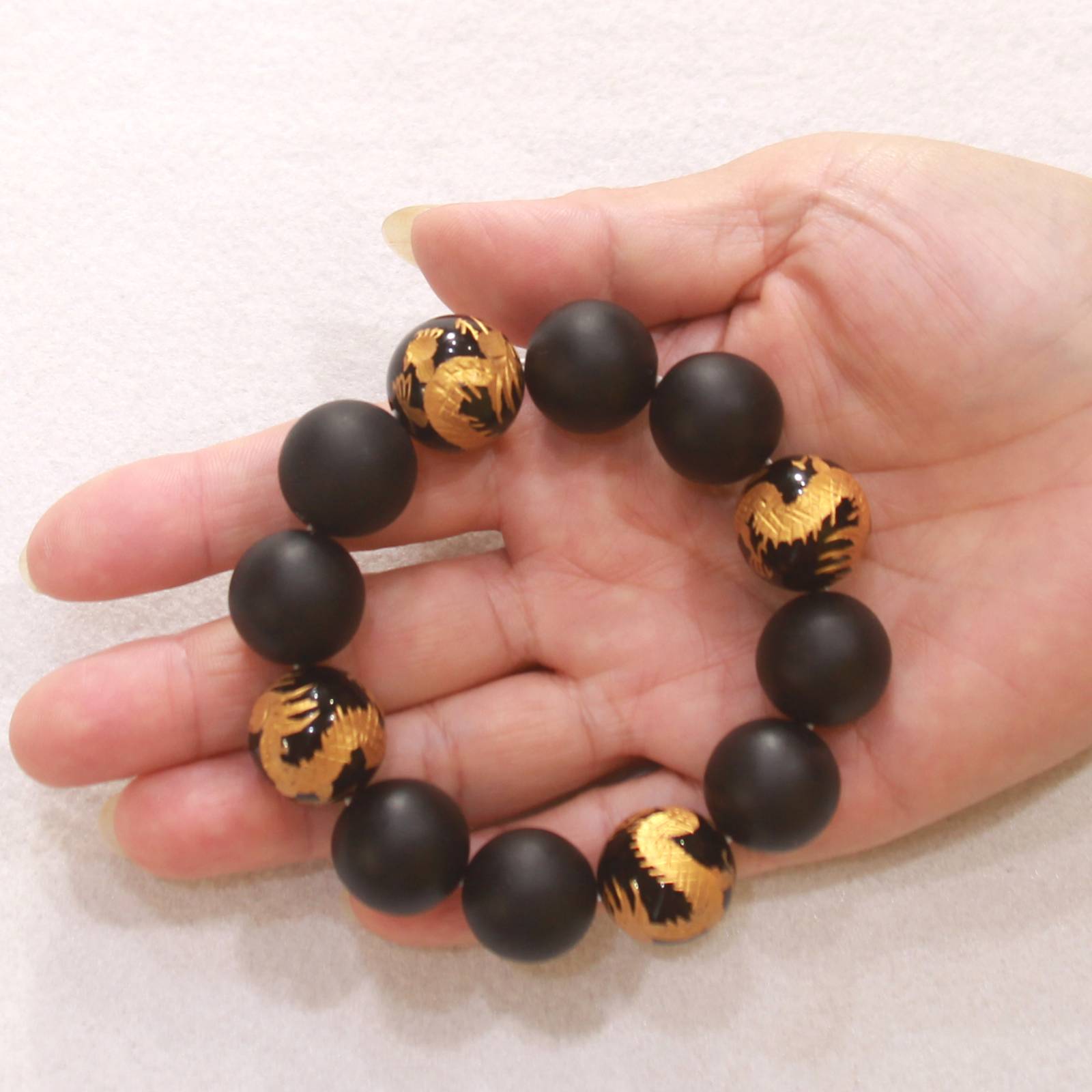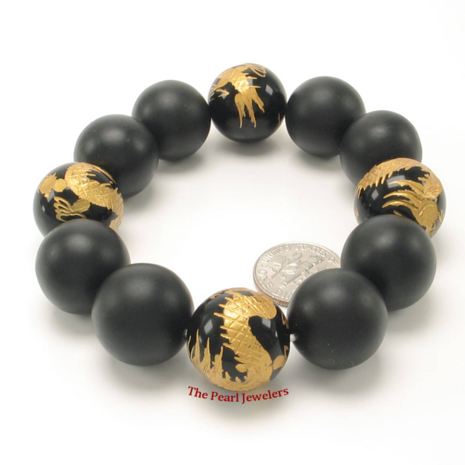 Eight Bian stone beads with four black onyx dragon beads make this 18mm bracelet a symbol of inner strength and transformation.
