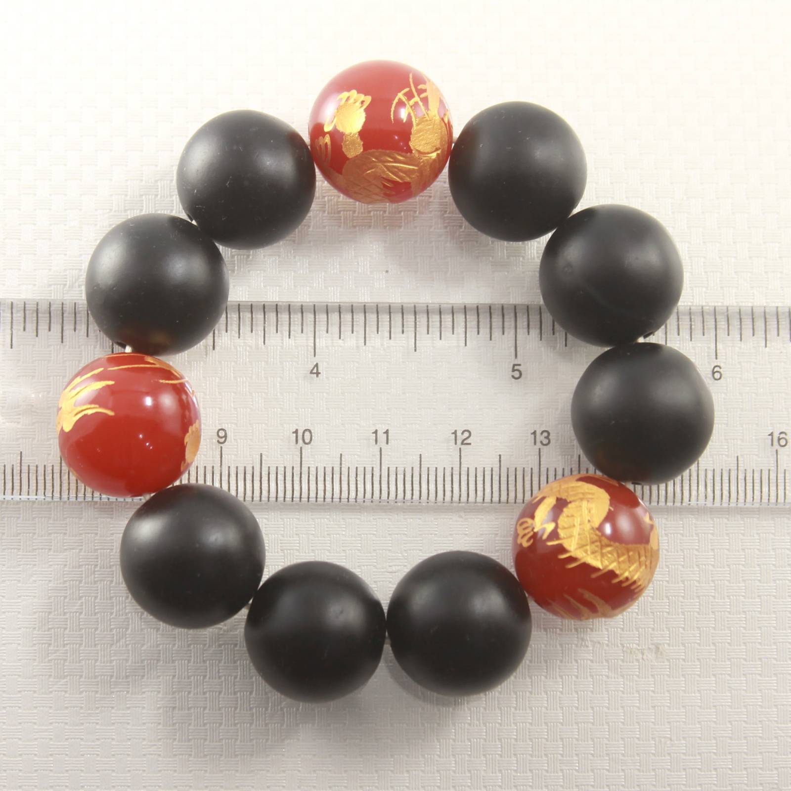 18mm Bian Stone Red Agate Dragon Beads Bracelet