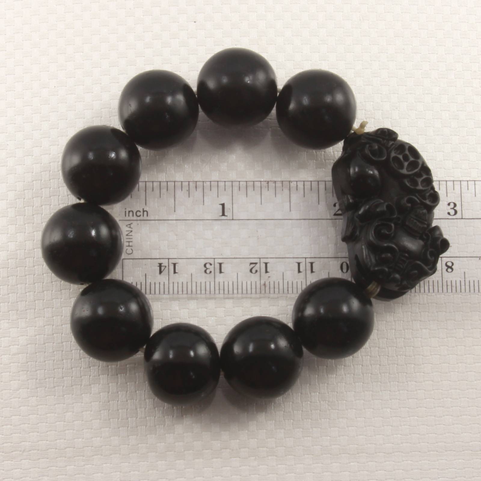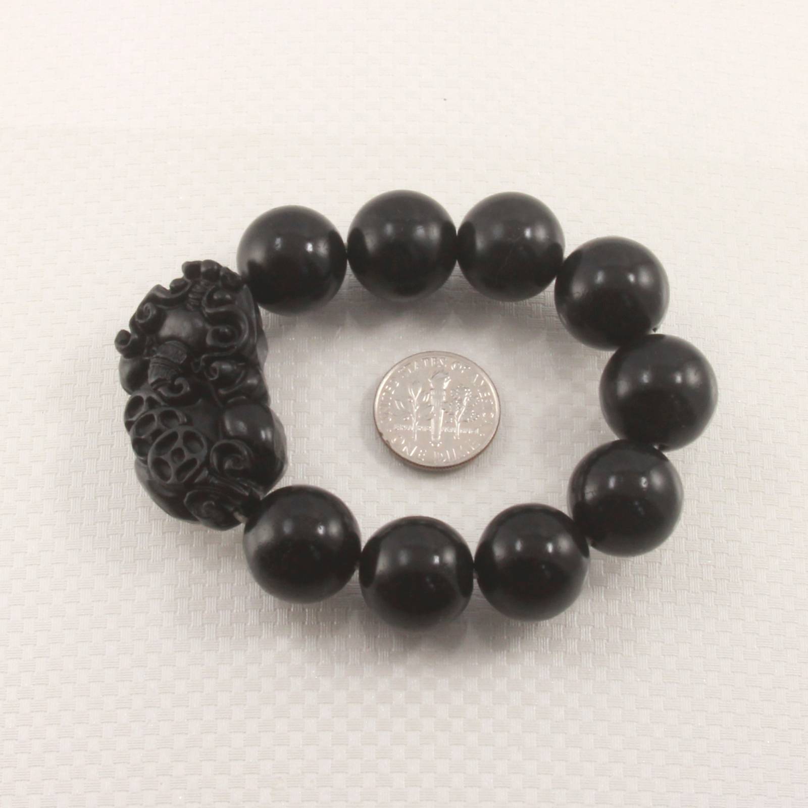 Nine to eleven Bian stone beads with a carved Pixiu create a bold bracelet for luck, balance, and strength.