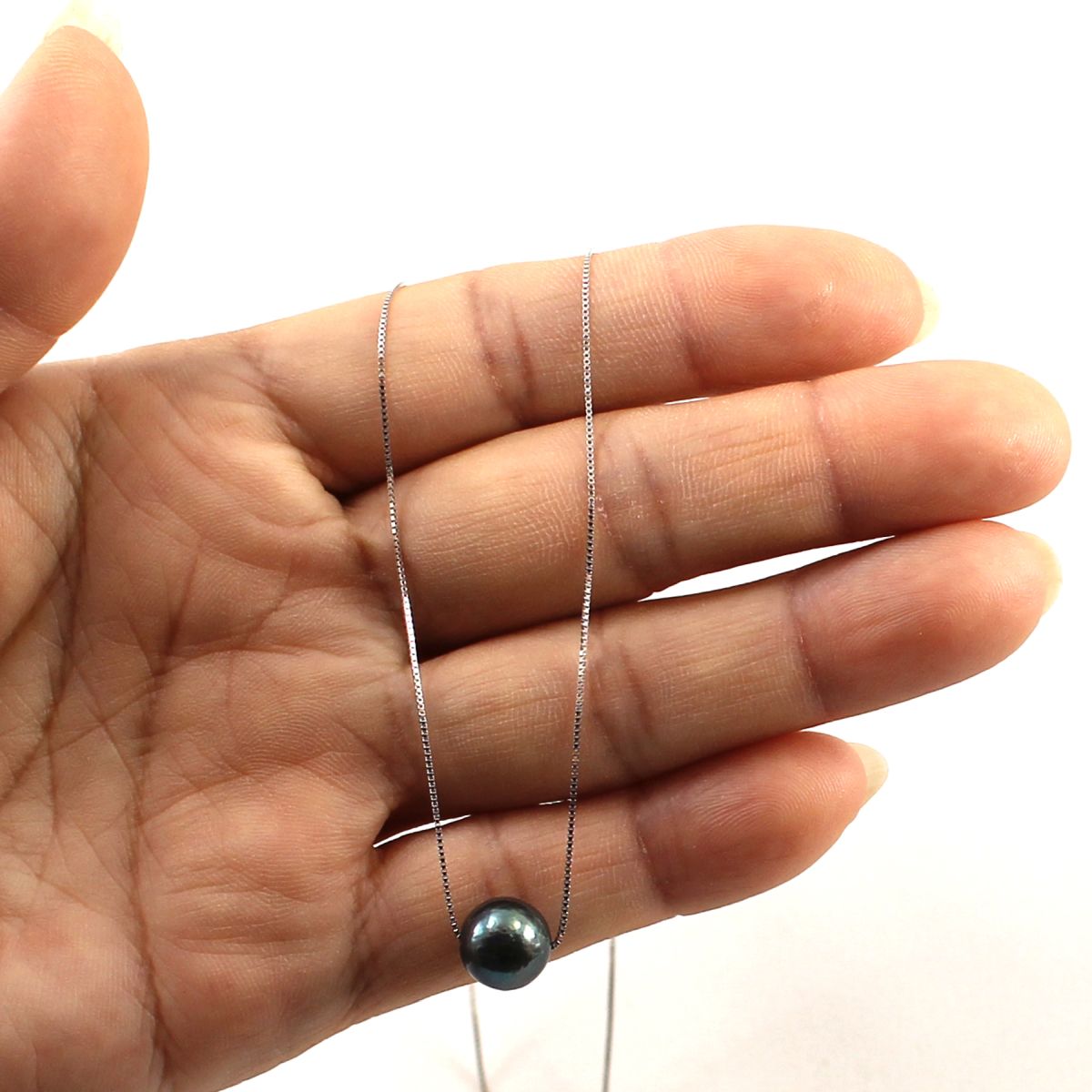 **Black Pearl on 14k White Gold Box Chain Necklace**