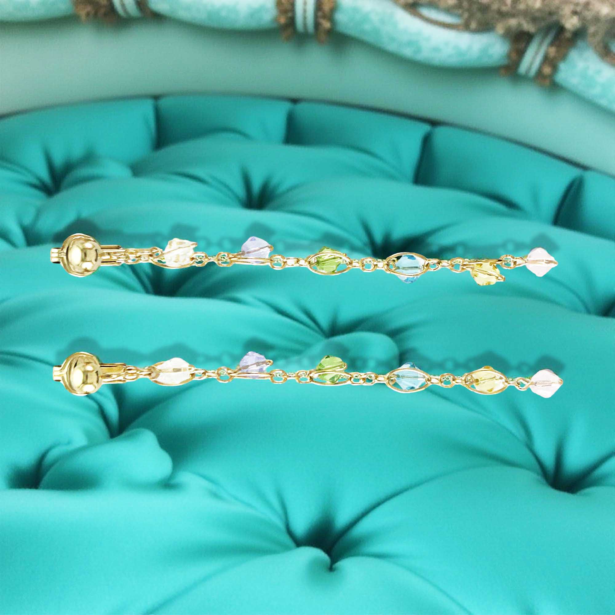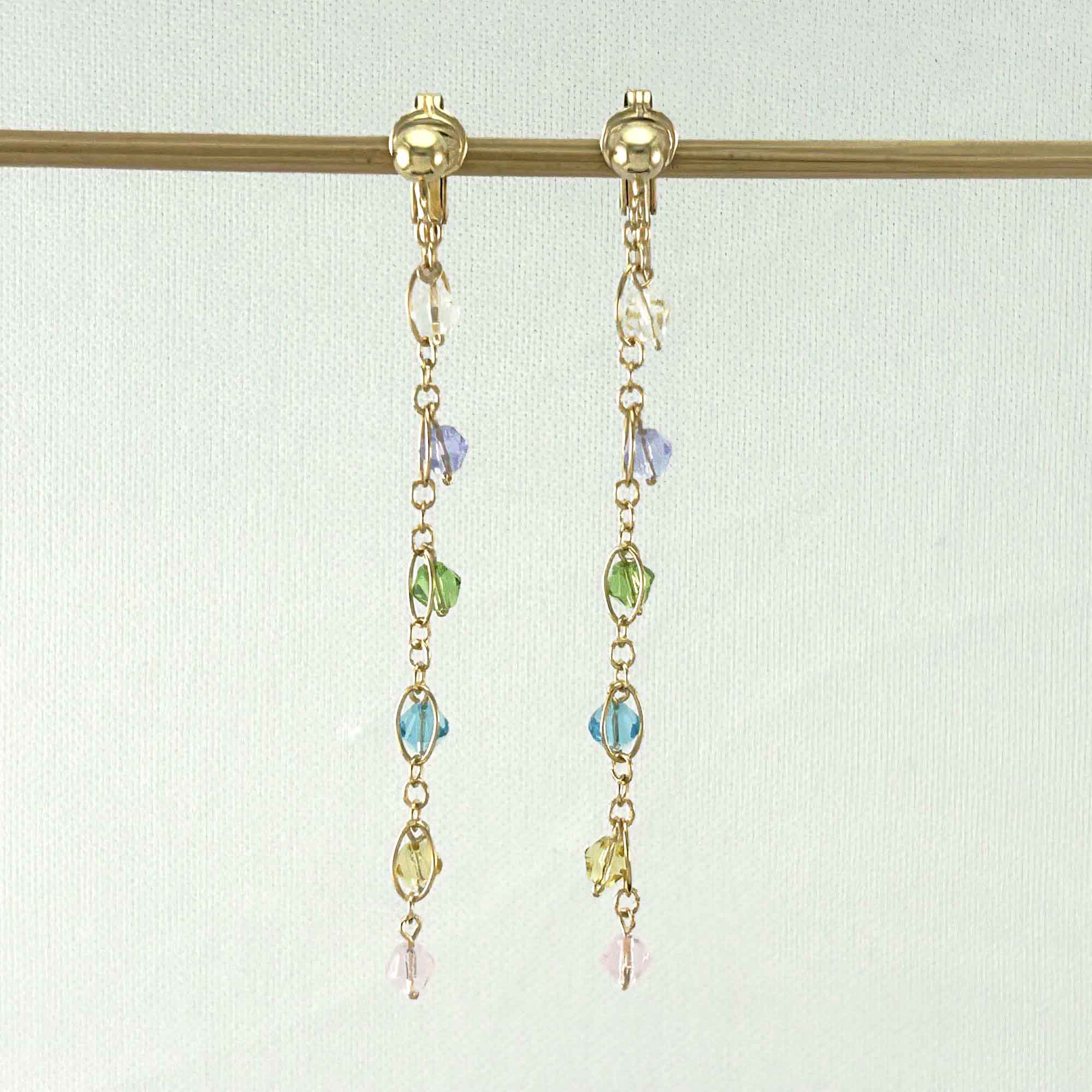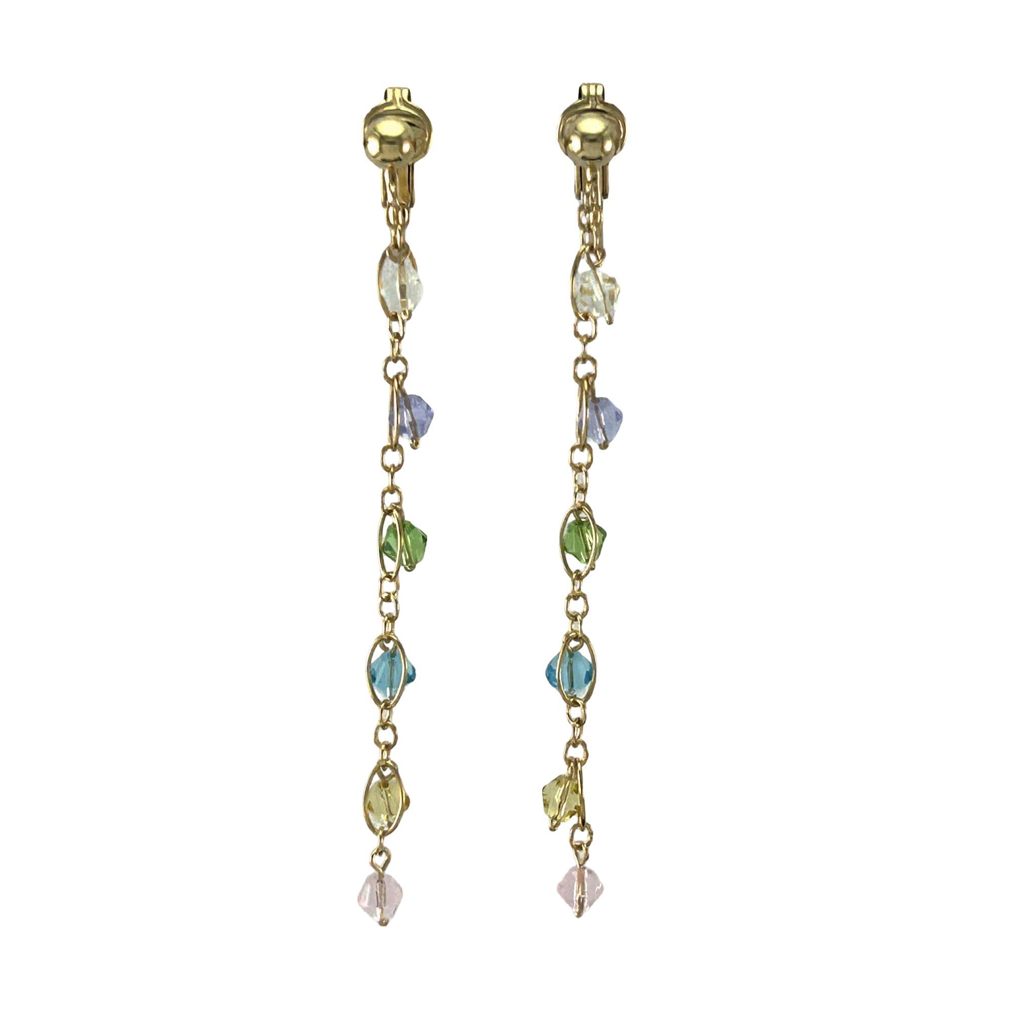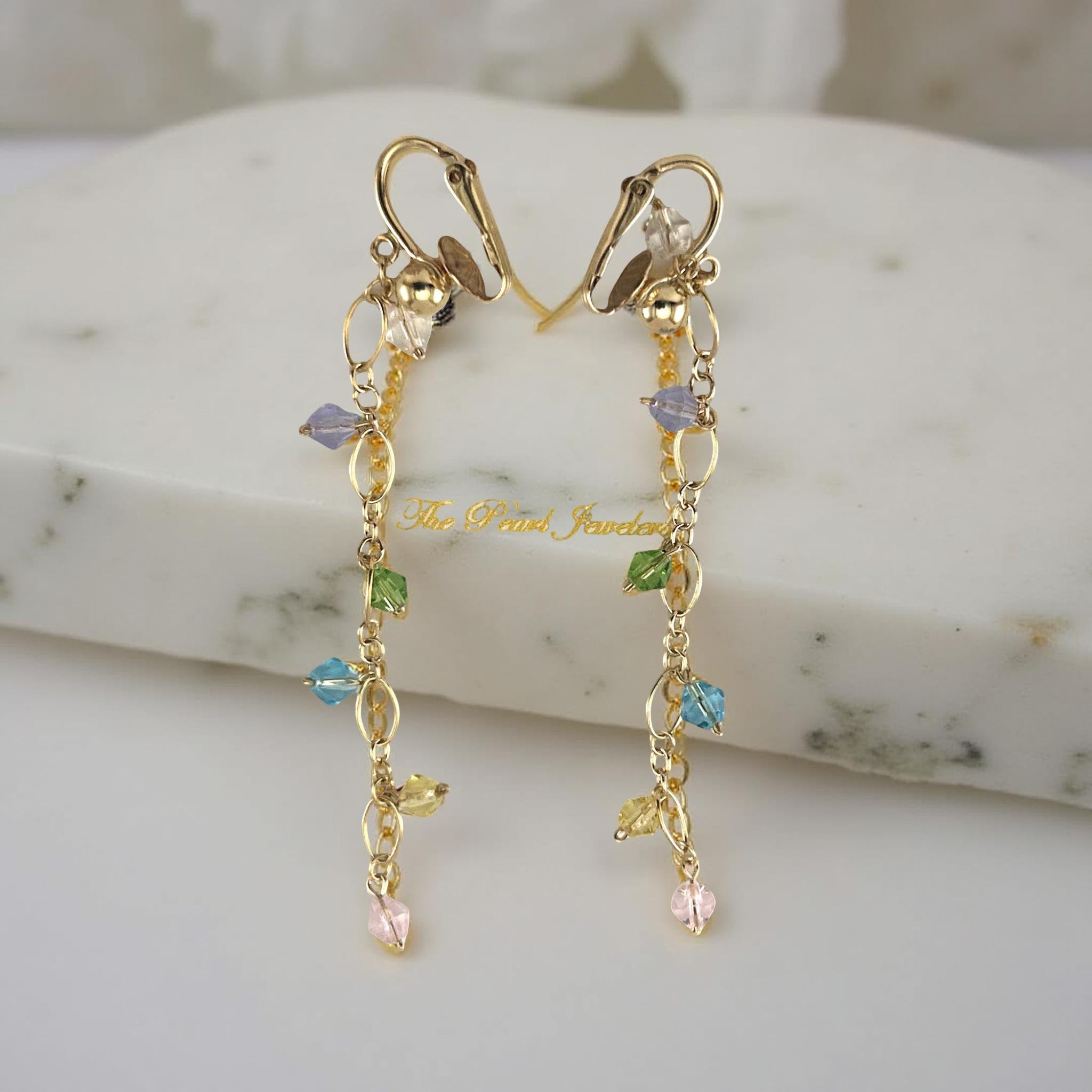 Handcrafted rainbow glass bead earrings in a 14K gold-filled non-pierced clip-on design, vibrant and elegant, designed for comfort and dependable daily wear.