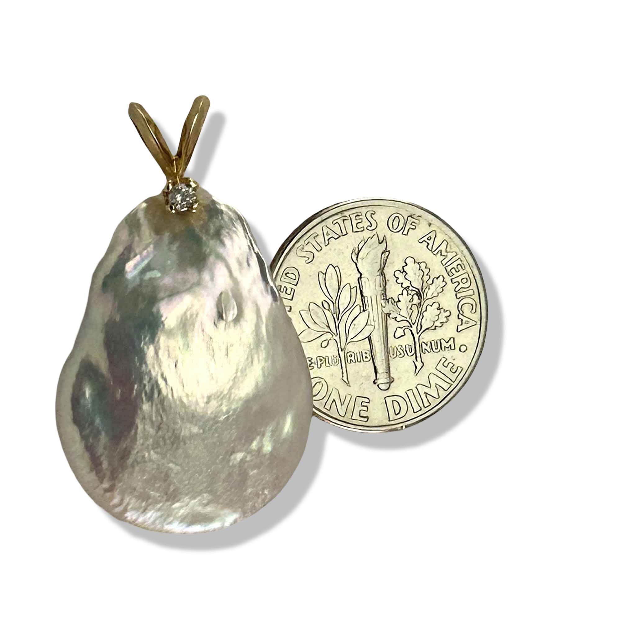 π€ Natural Baroque White Coin Pearl with Diamond Accent