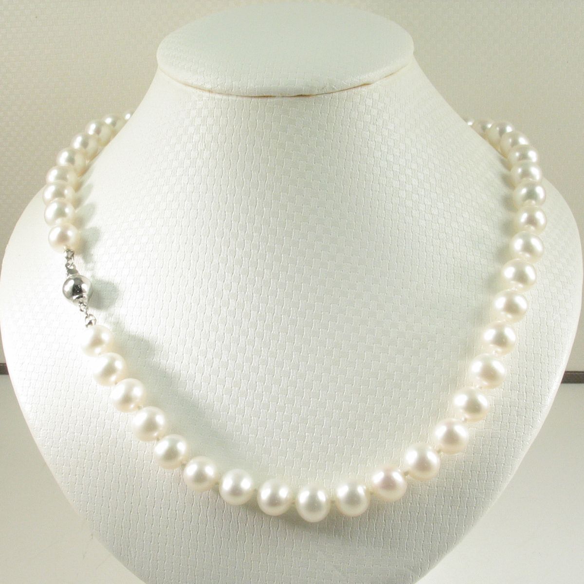 White Freshwater Pearl Hand-Knotted Necklace with 925 Silver Clasp
