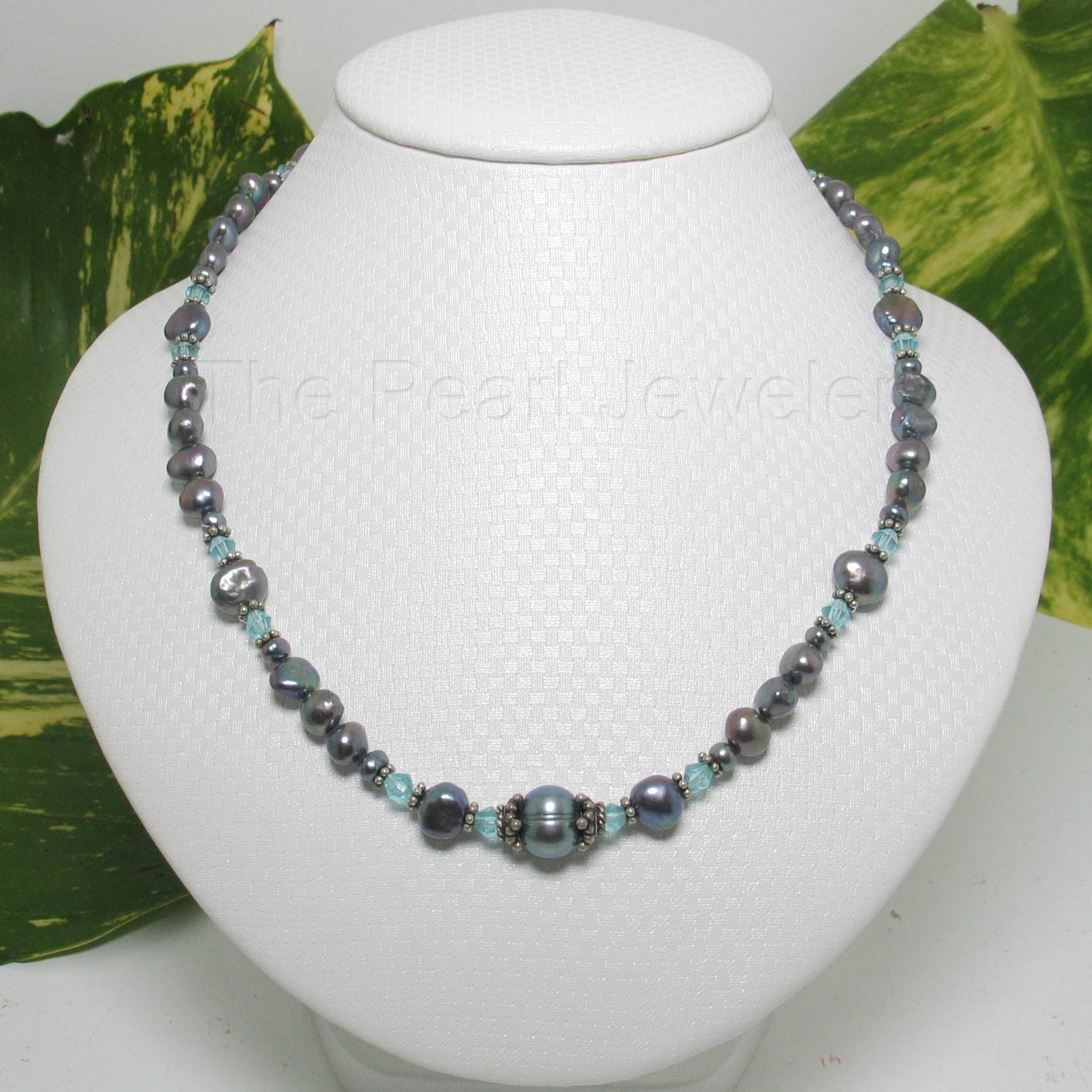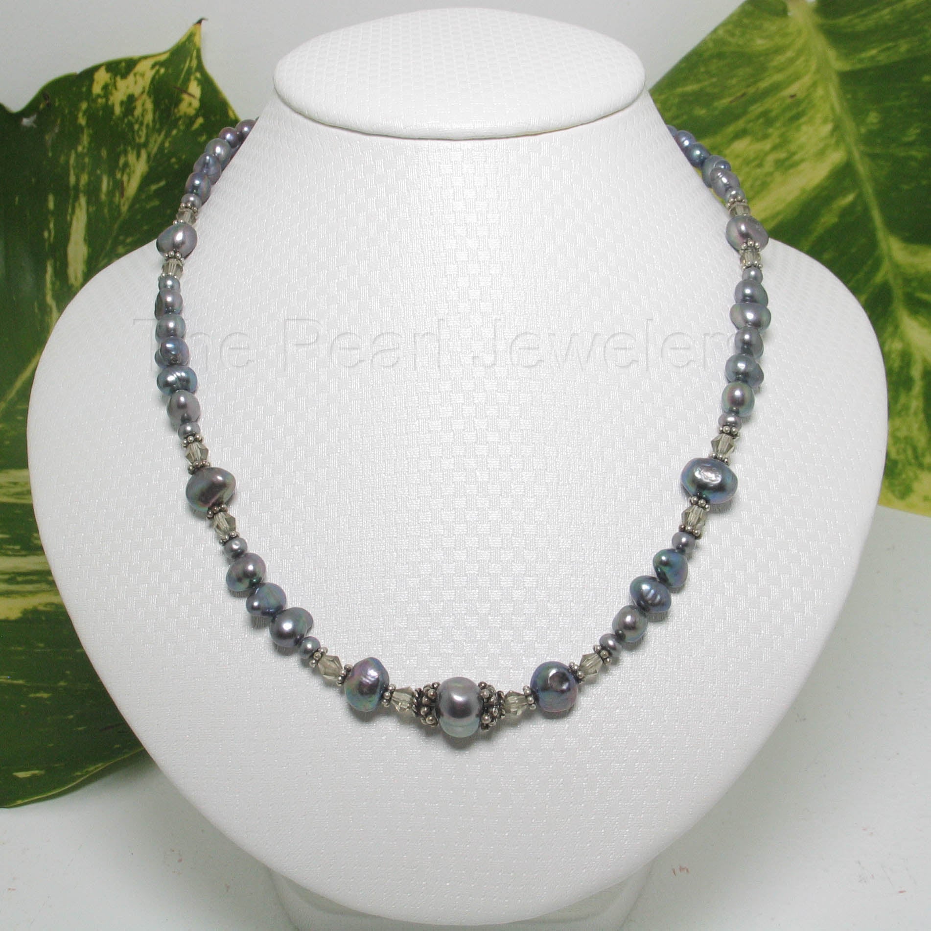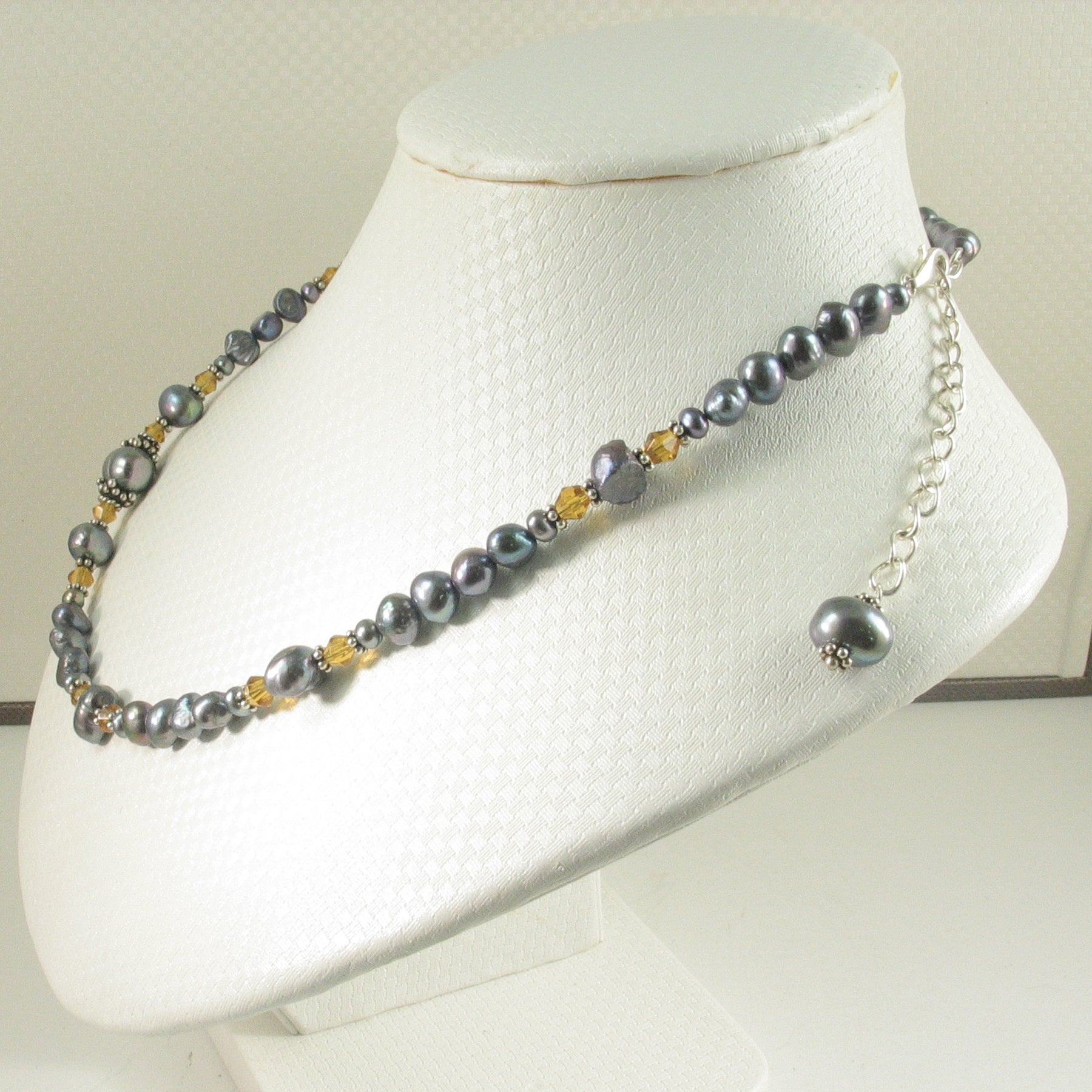 π Black baroque pearls shimmer with your choice of crystal color accent.
