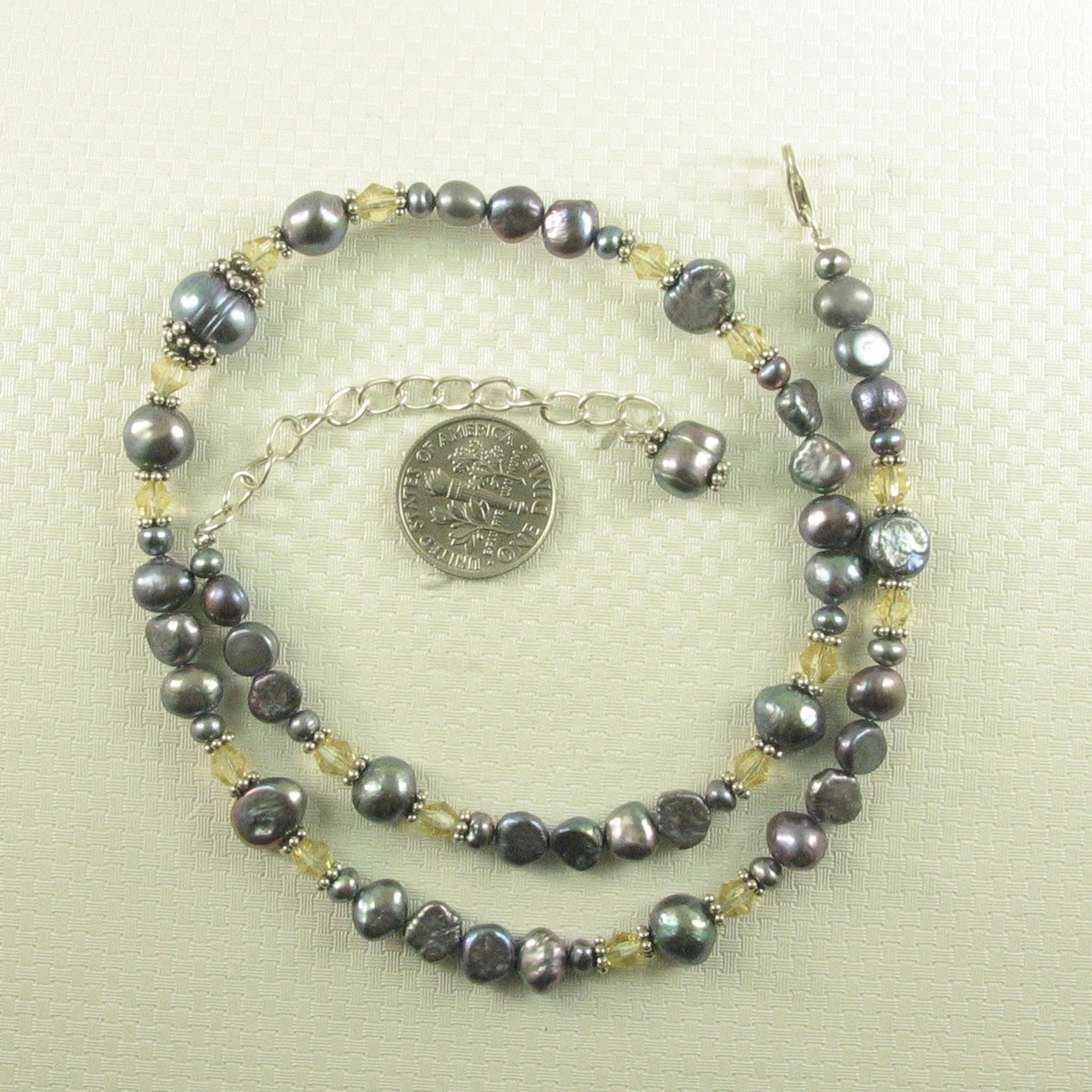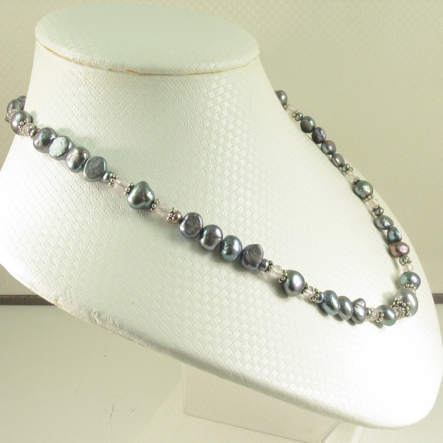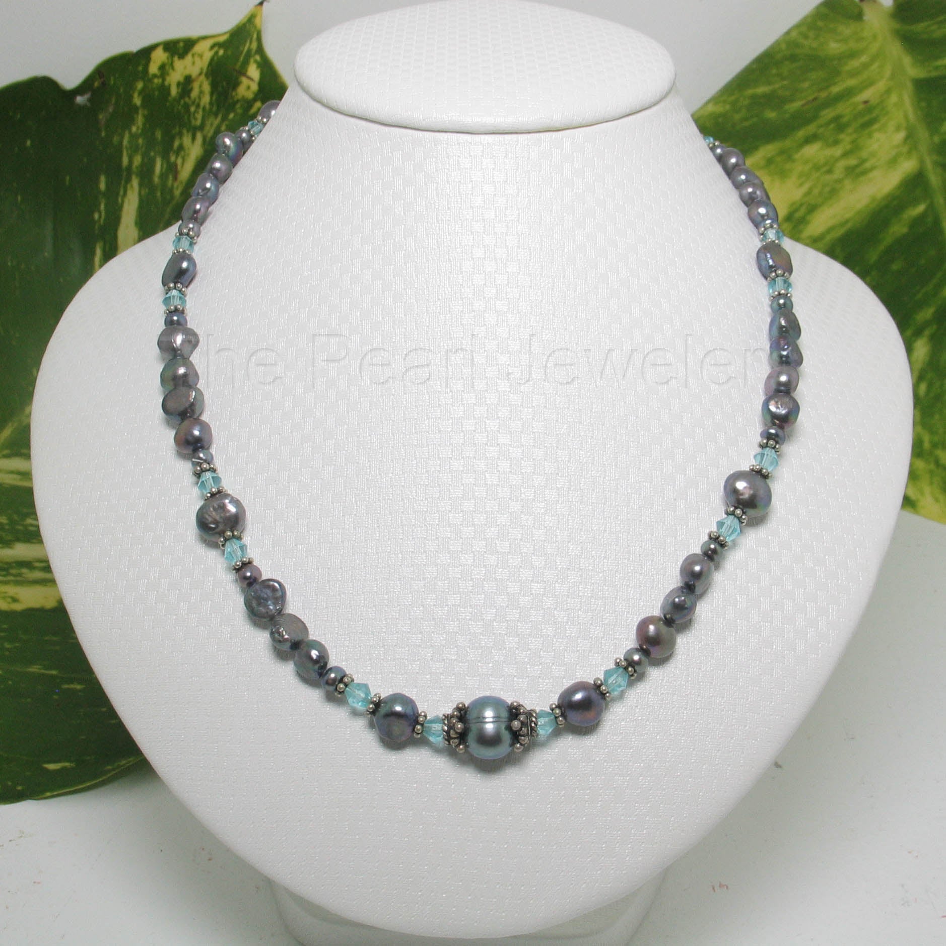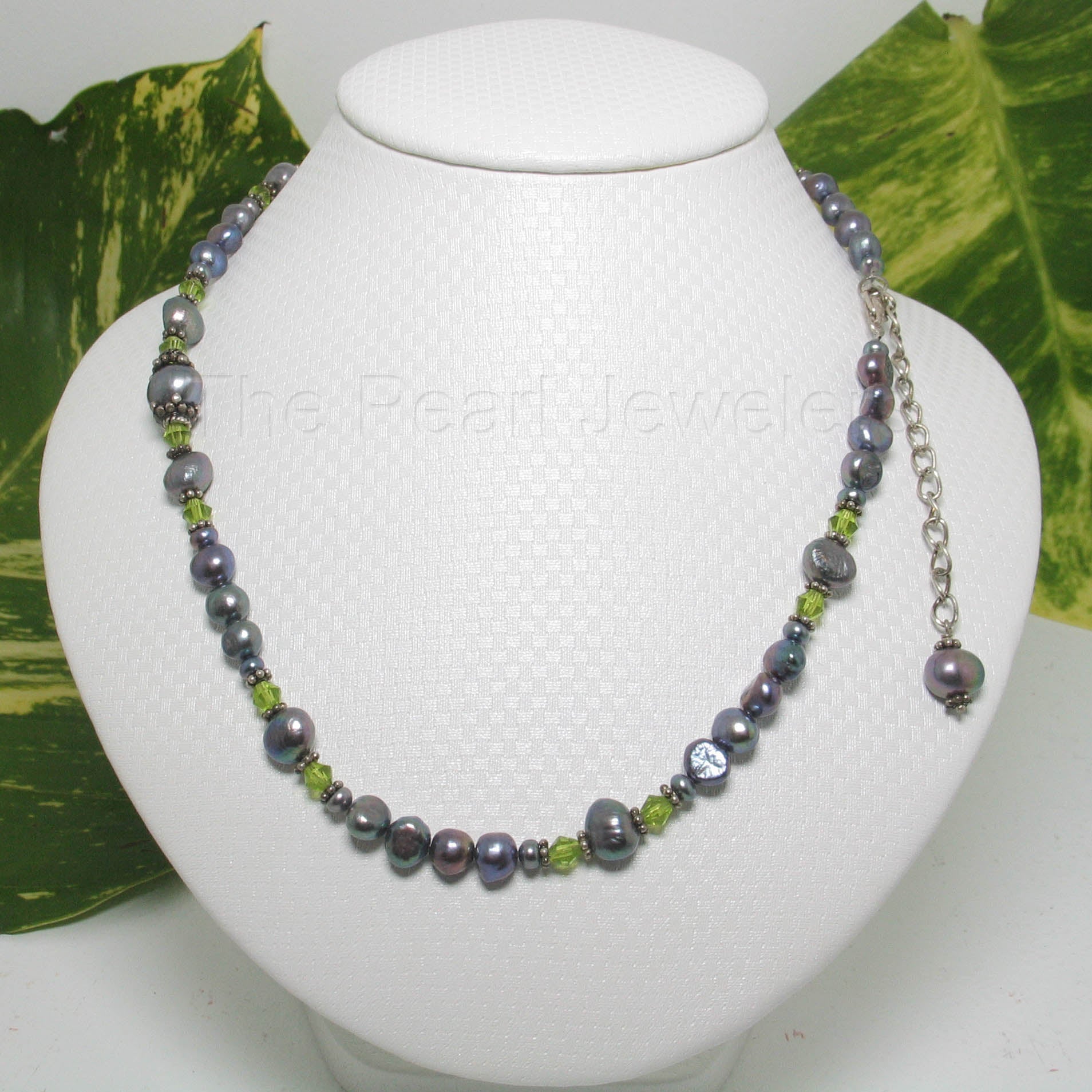 π Black baroque pearls shimmer with your choice of crystal color accent.