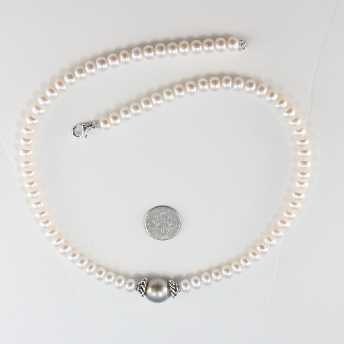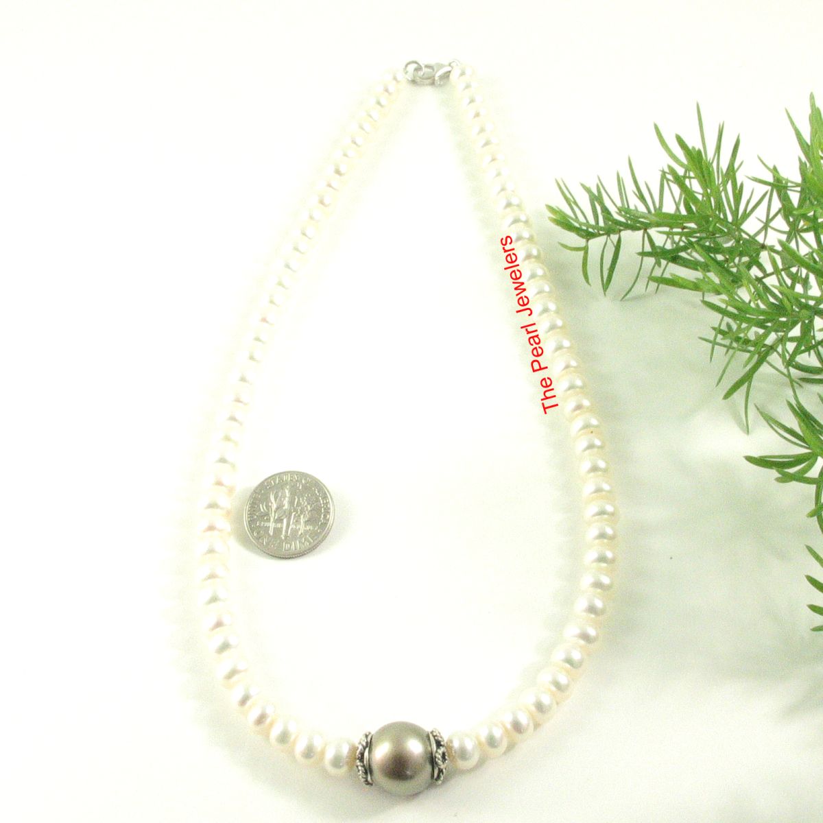 Khaki Tahitian Pearl with Freshwater Pearls & Silver Bali Beads Necklace designed for comfort and dependable daily wear.