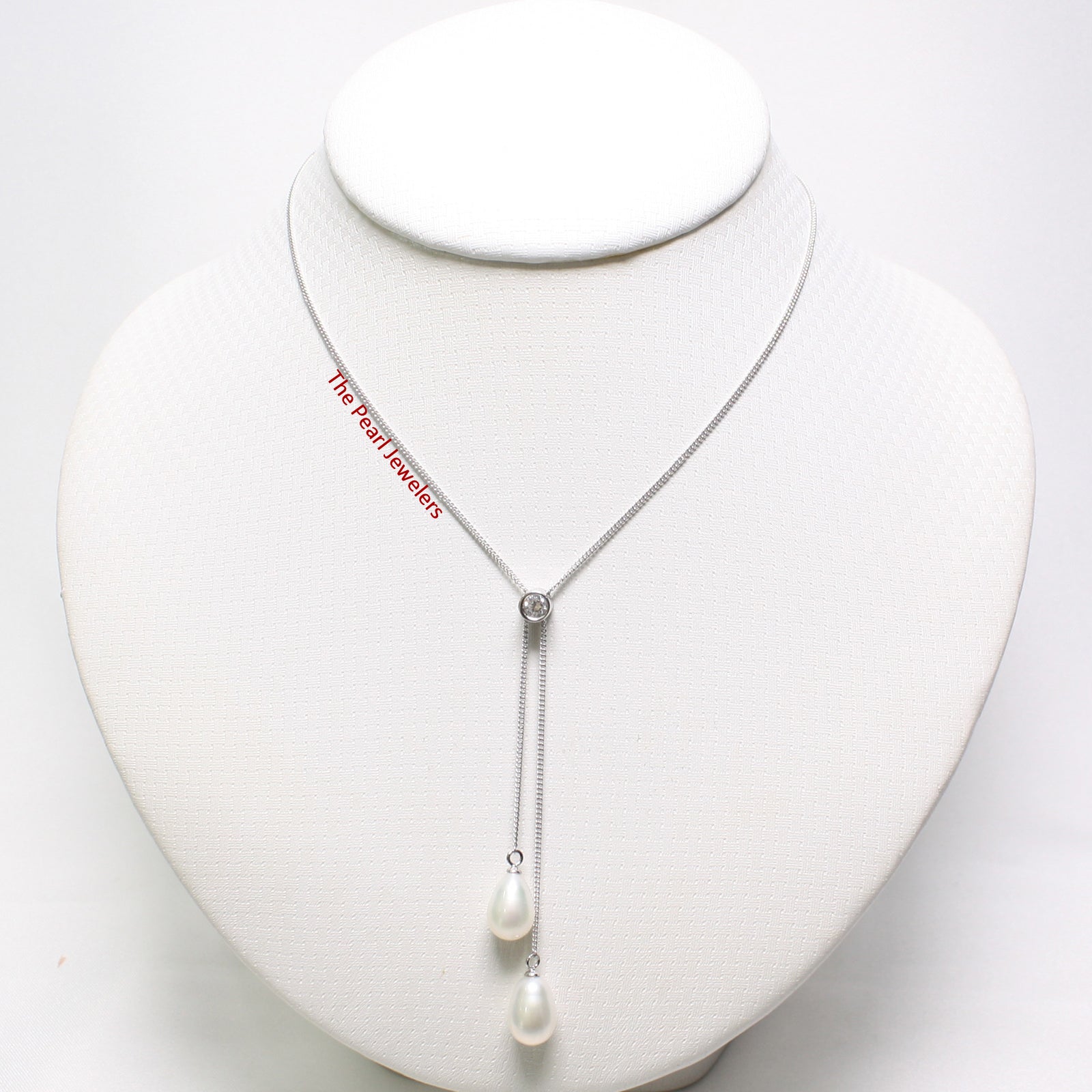Solid Silver .925 CZ Pearl Necklace – Multi Color Options