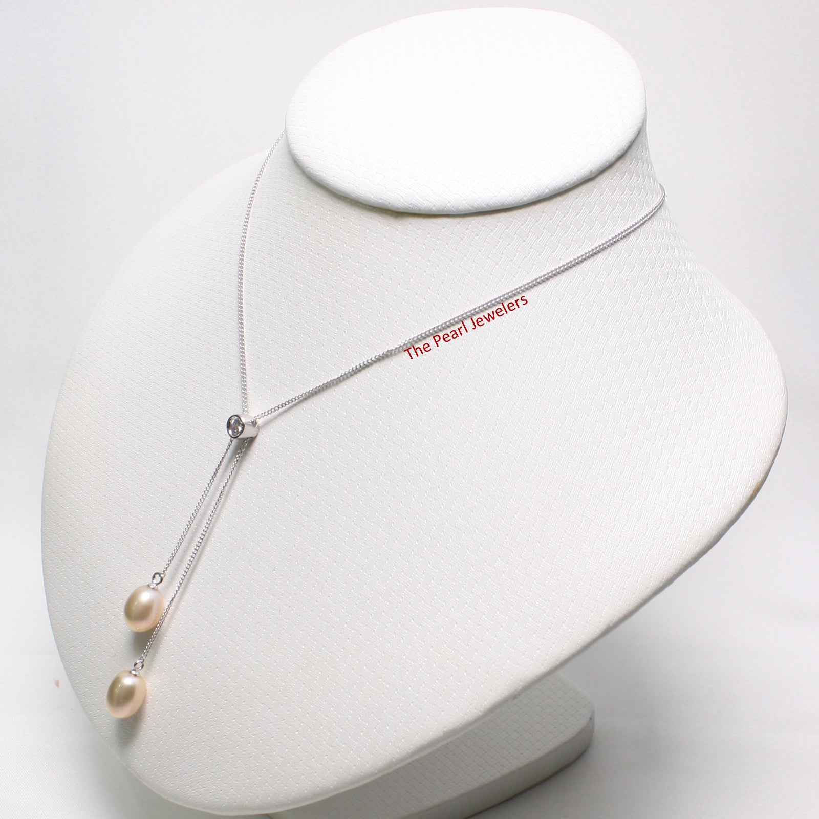 A handcrafted rhodium-plated .925 silver necklace showcasing two lustrous pearls, designed for comfort and dependable daily wear.