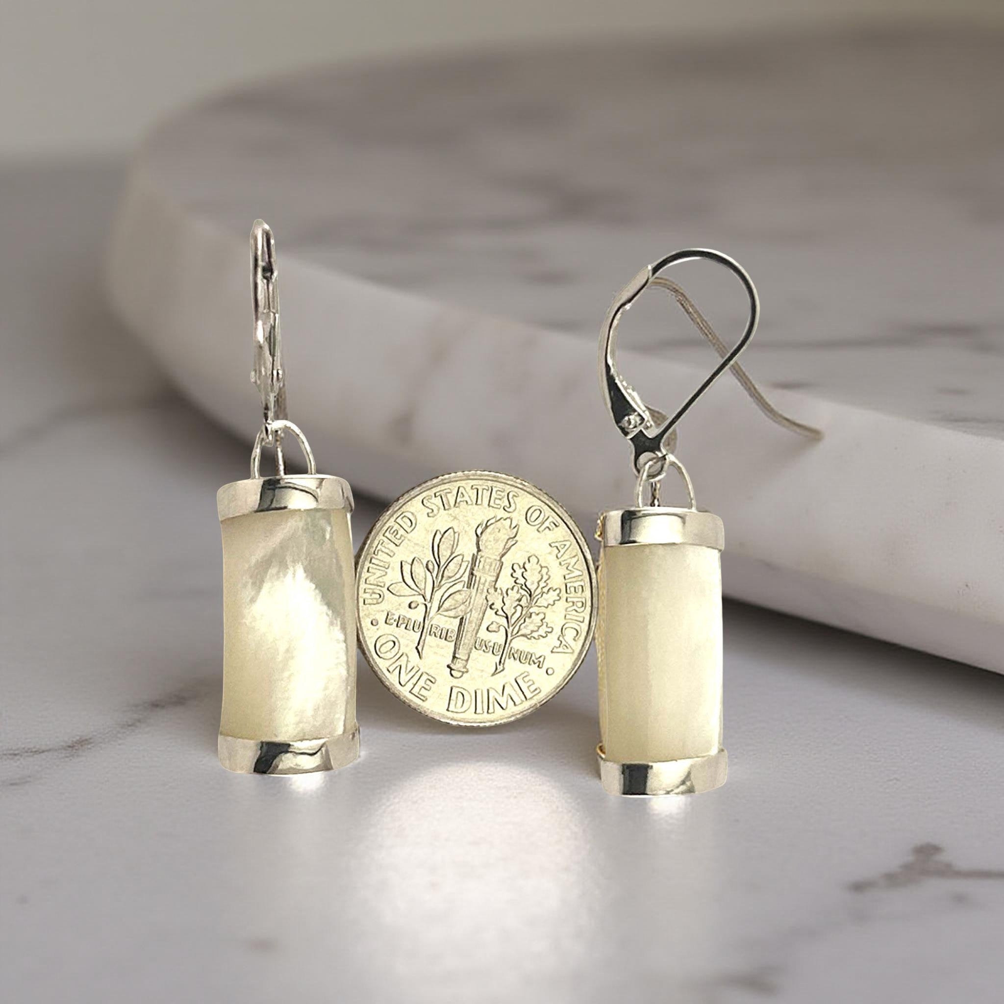 Elegant curved mother of pearl cabochons in sterling silver leverbacks, versatile for both day and evening wear, Hand-finished in Hawaii with attention to detail and balanced proportions.