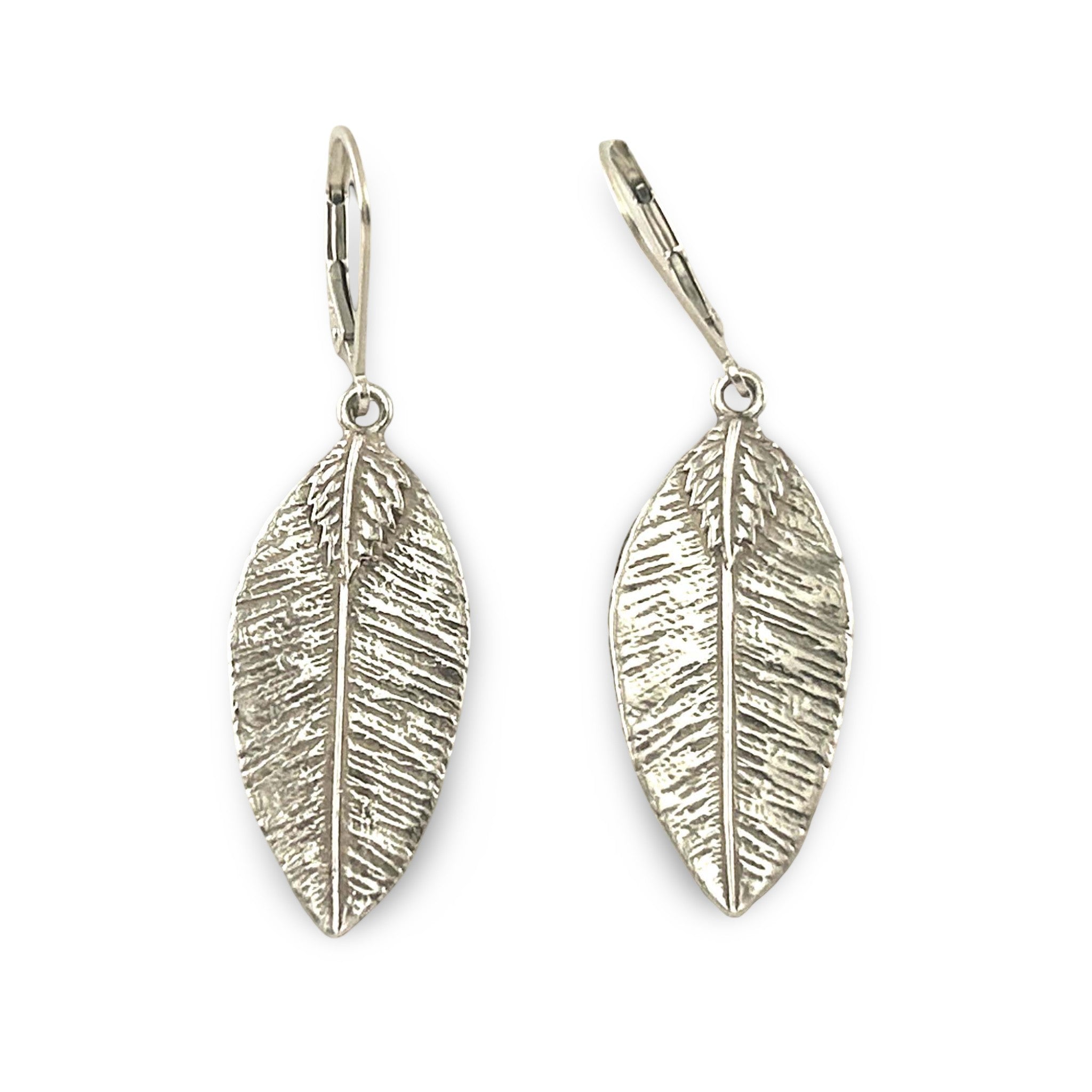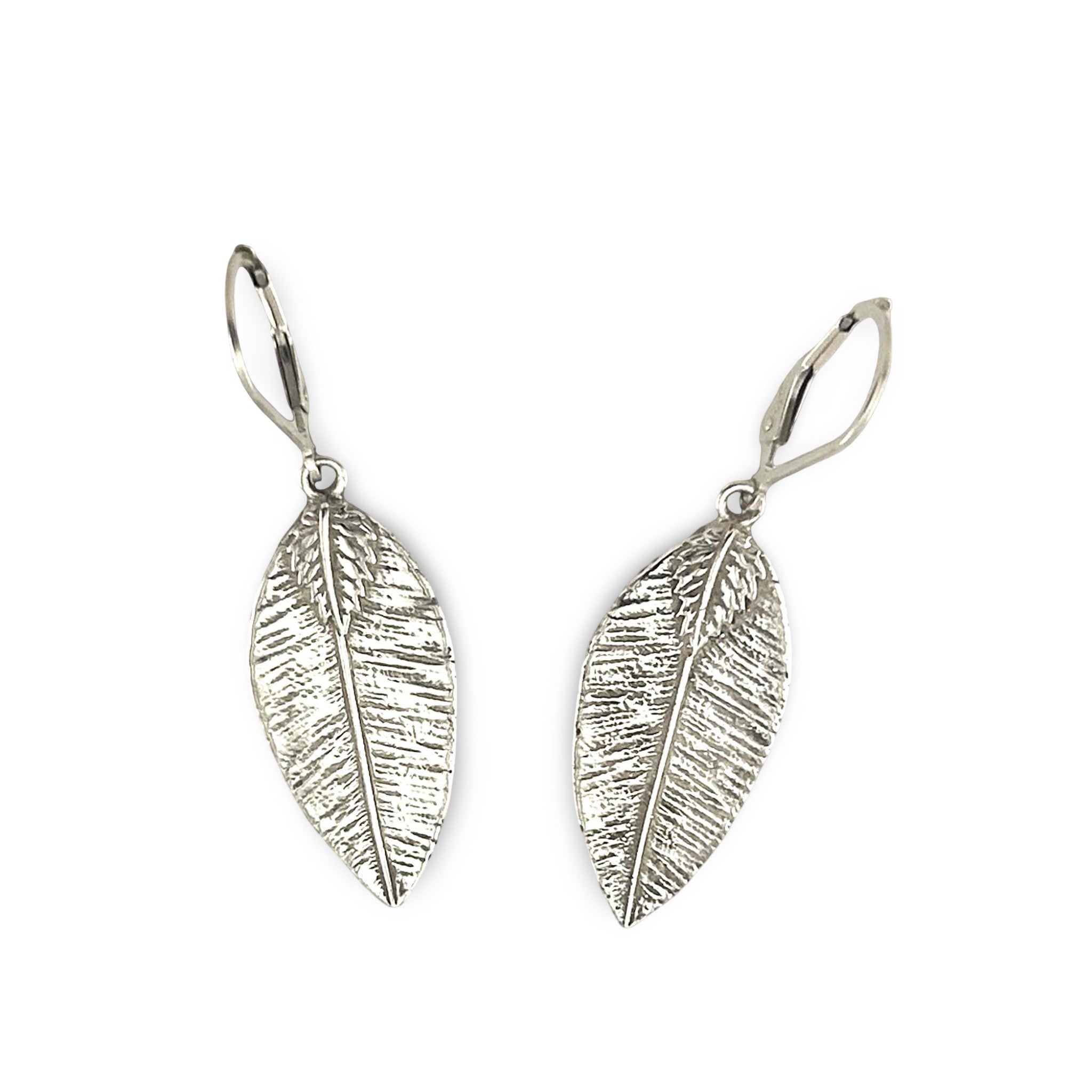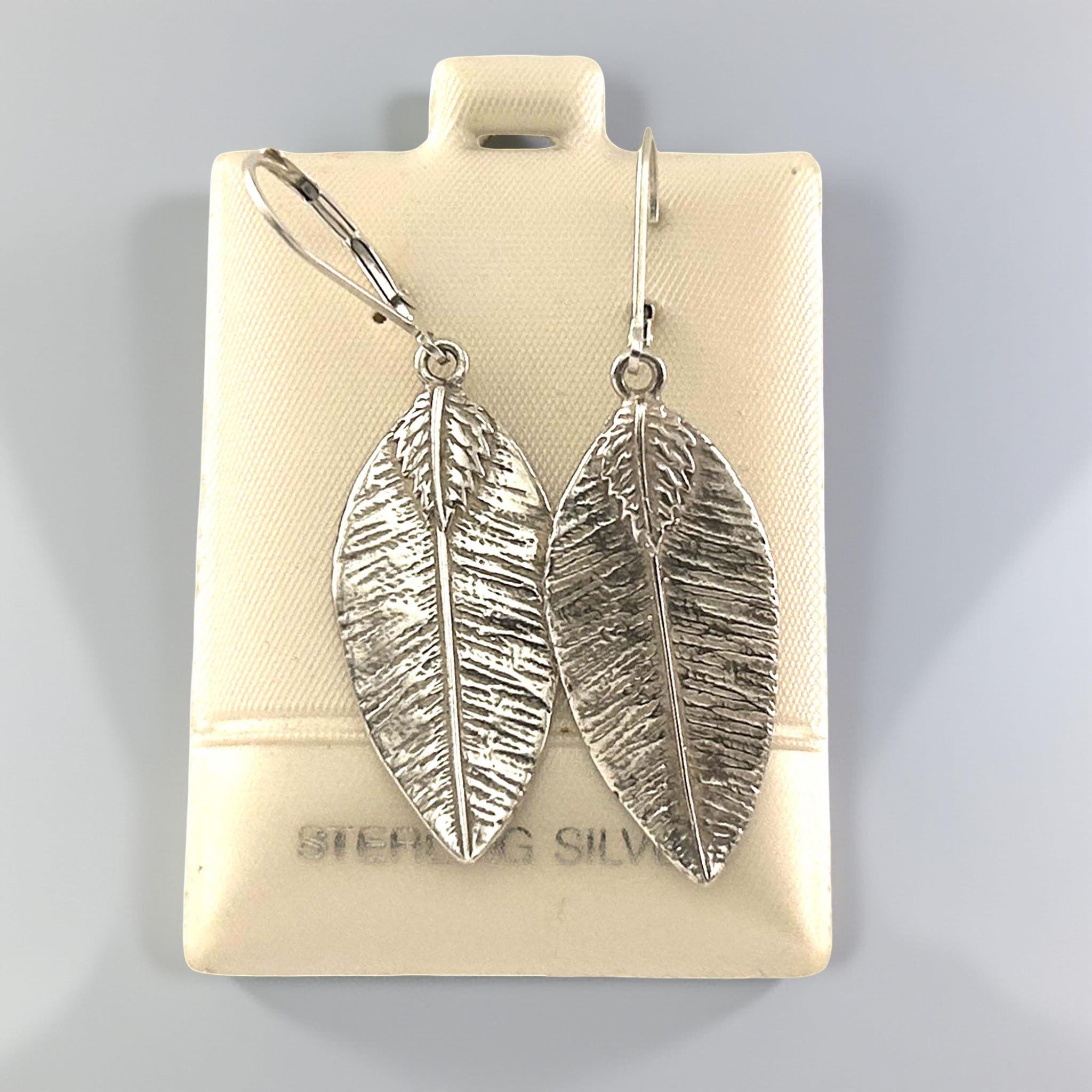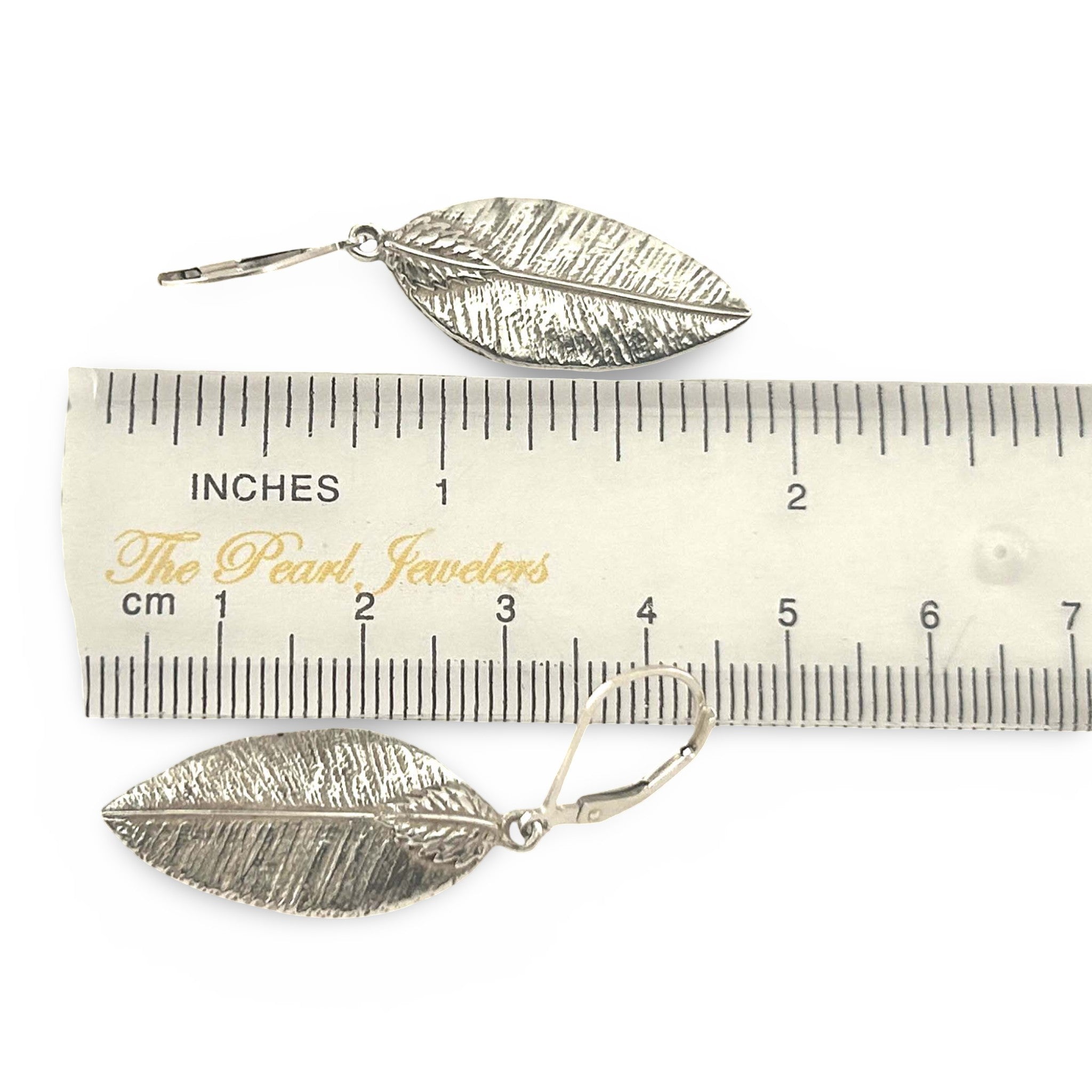 Sterling Silver Leaf Textured Long Drop Dangle Earrings
