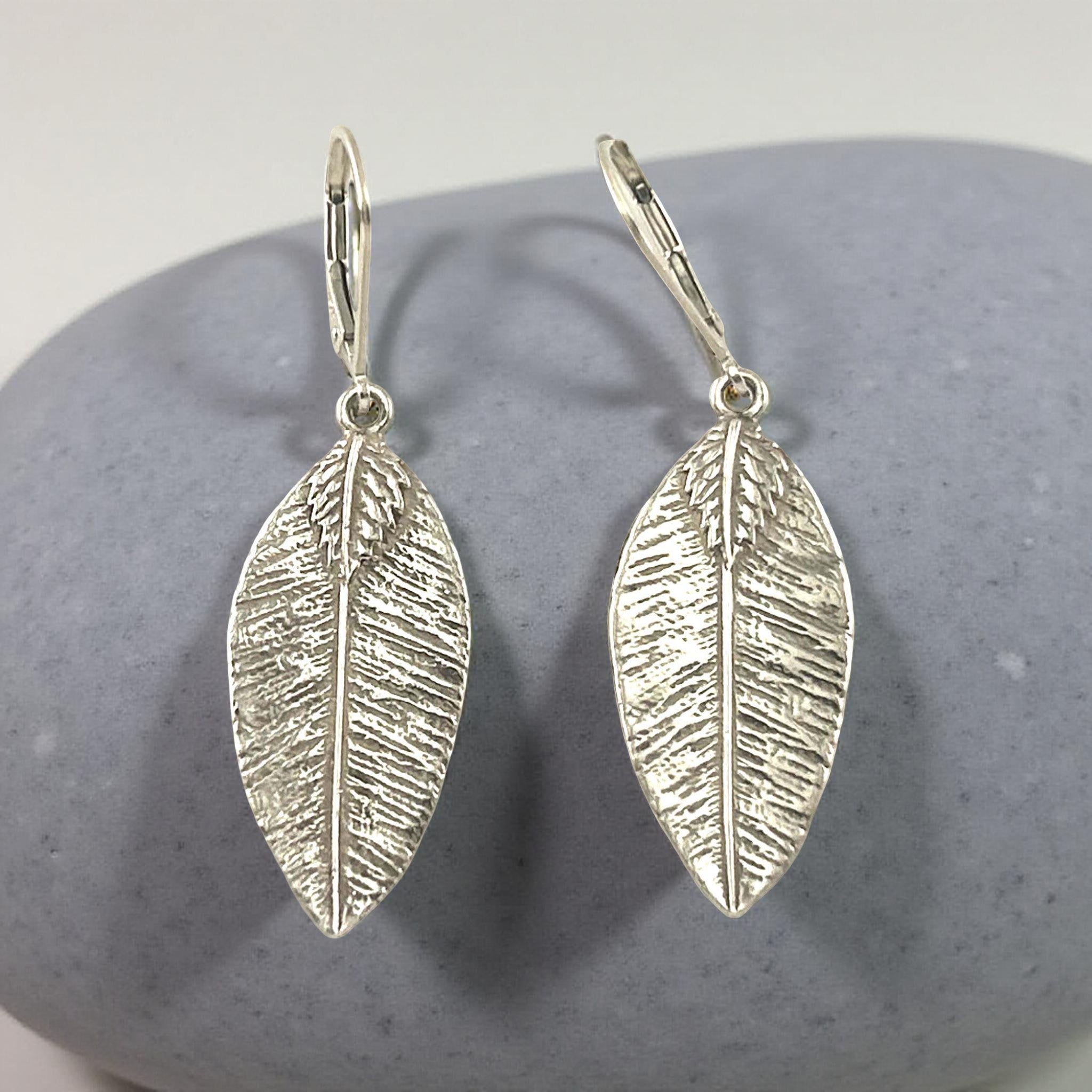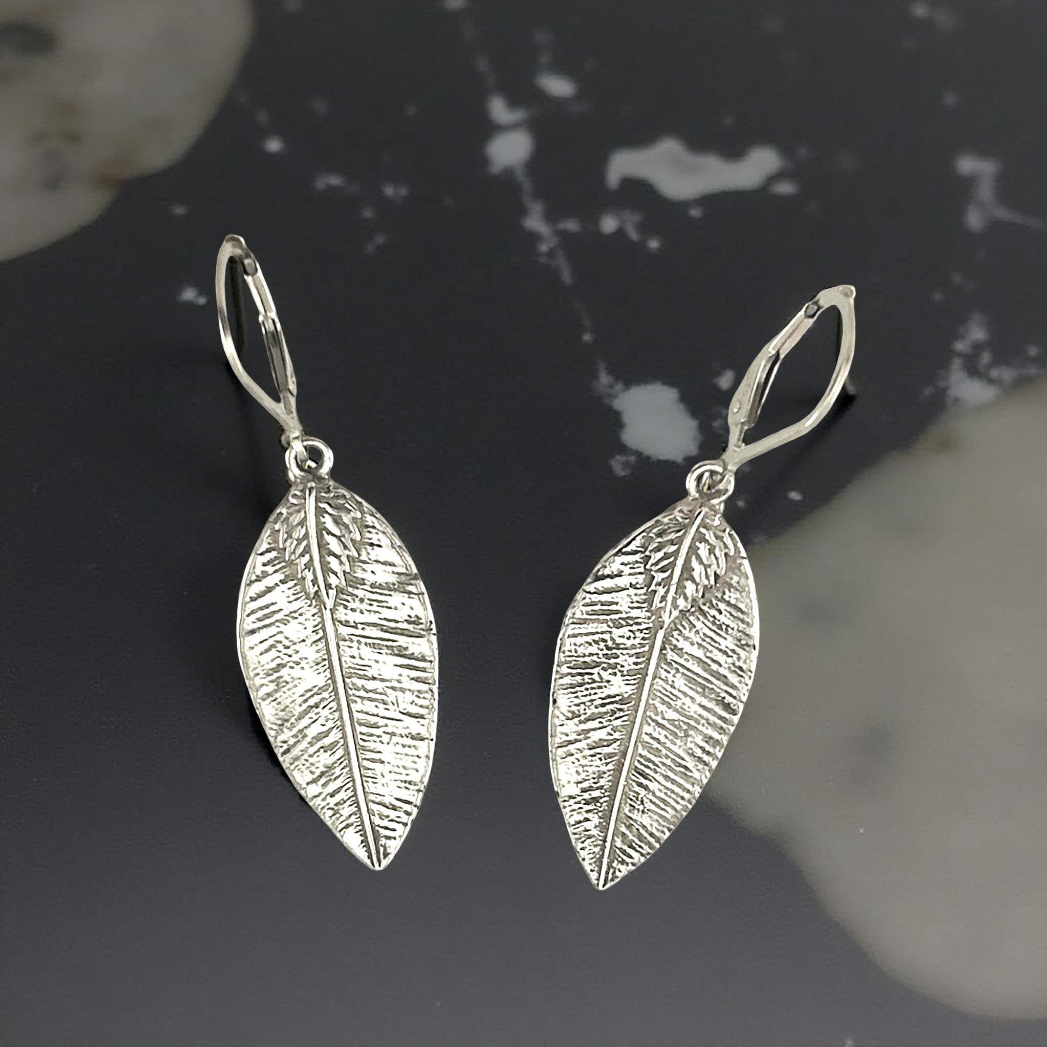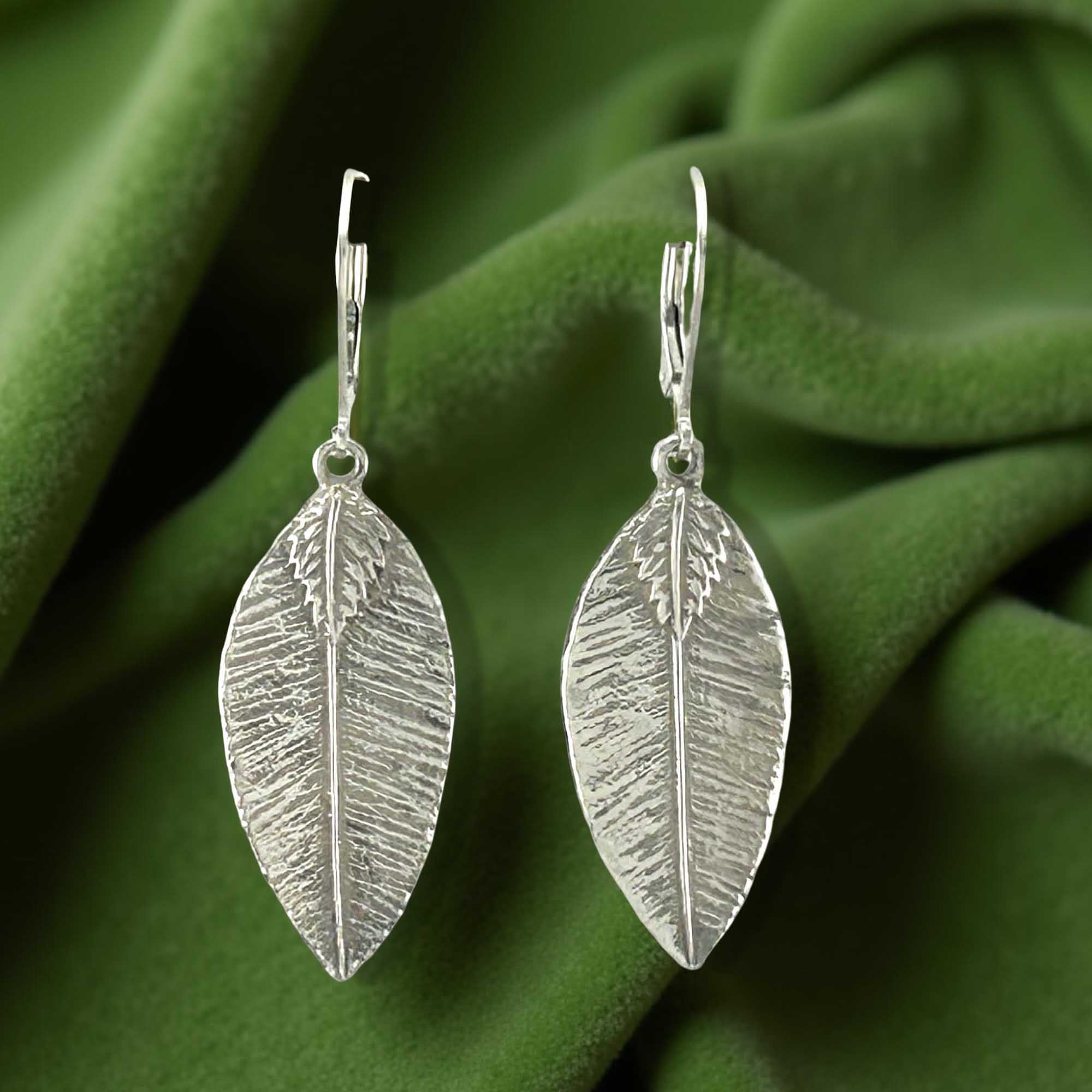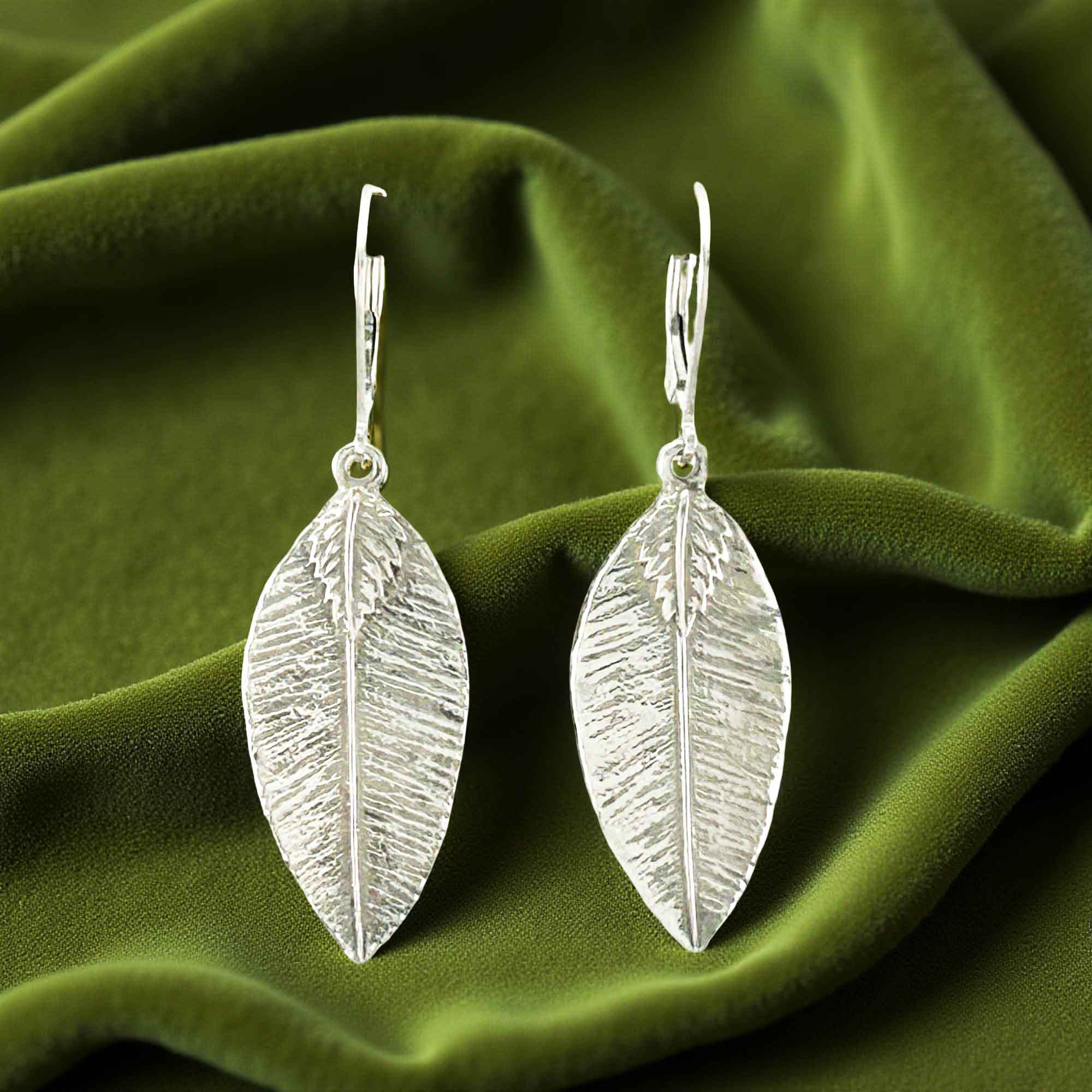 💚 Elegant leaf-textured sterling silver earrings designed for everyday sophistication.