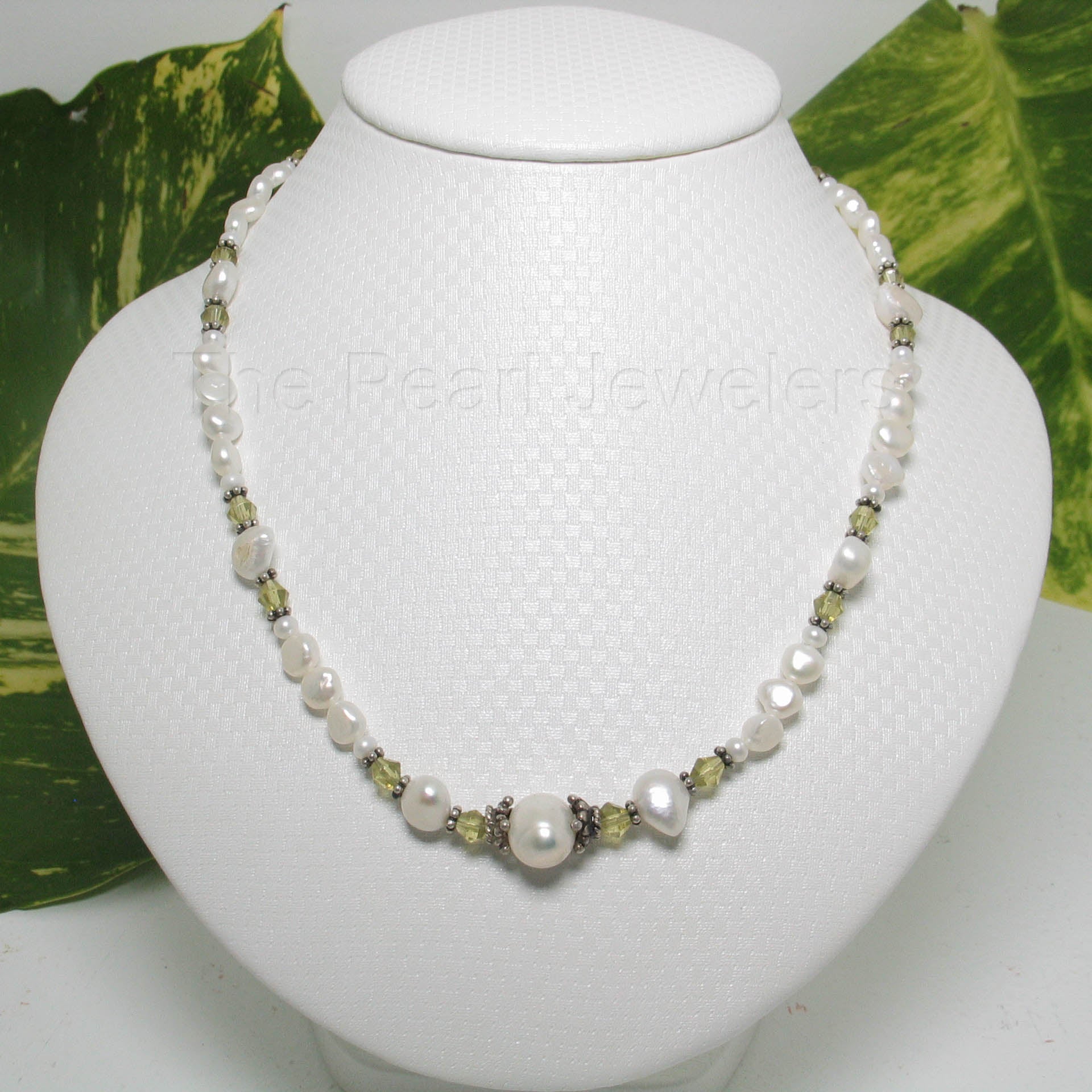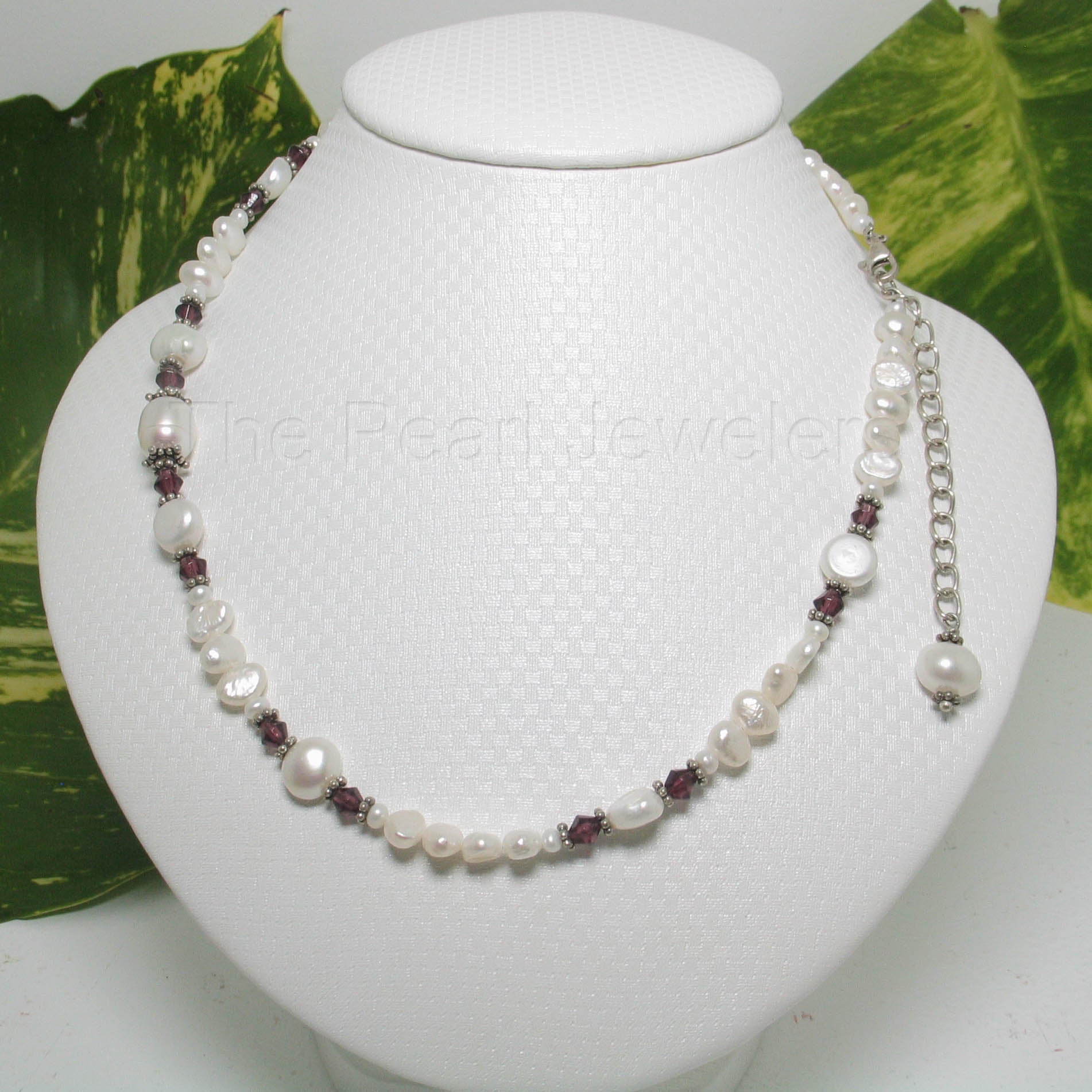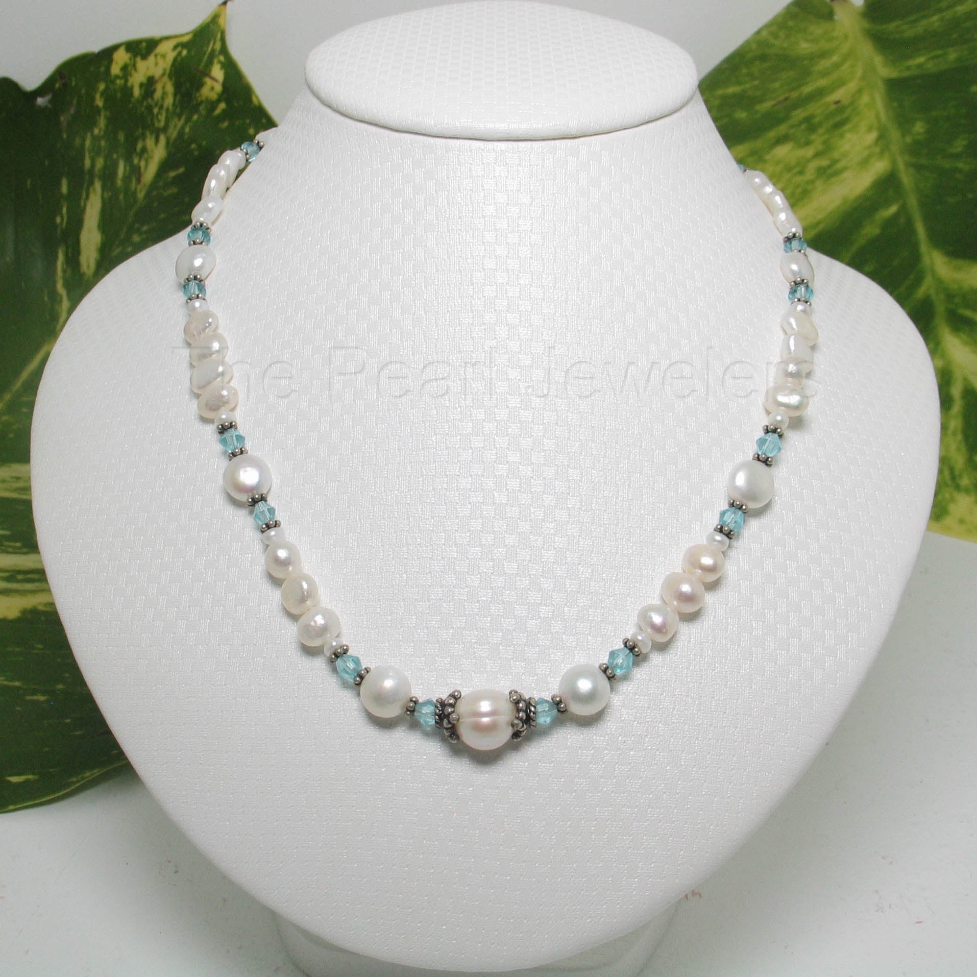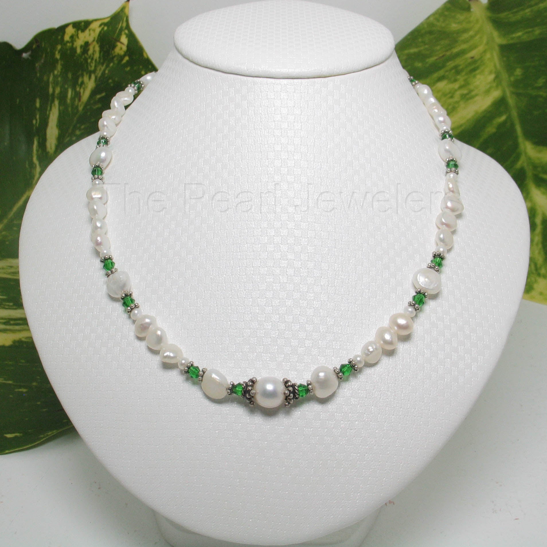 π A radiant mix of colored glass crystals with lustrous white pearls.