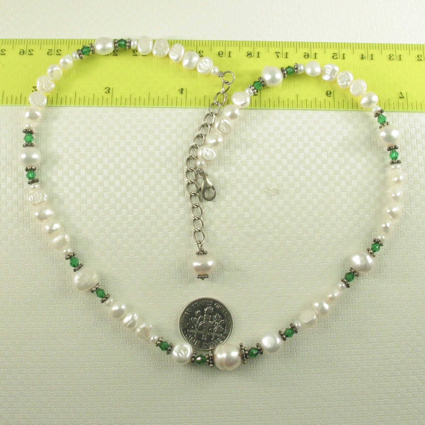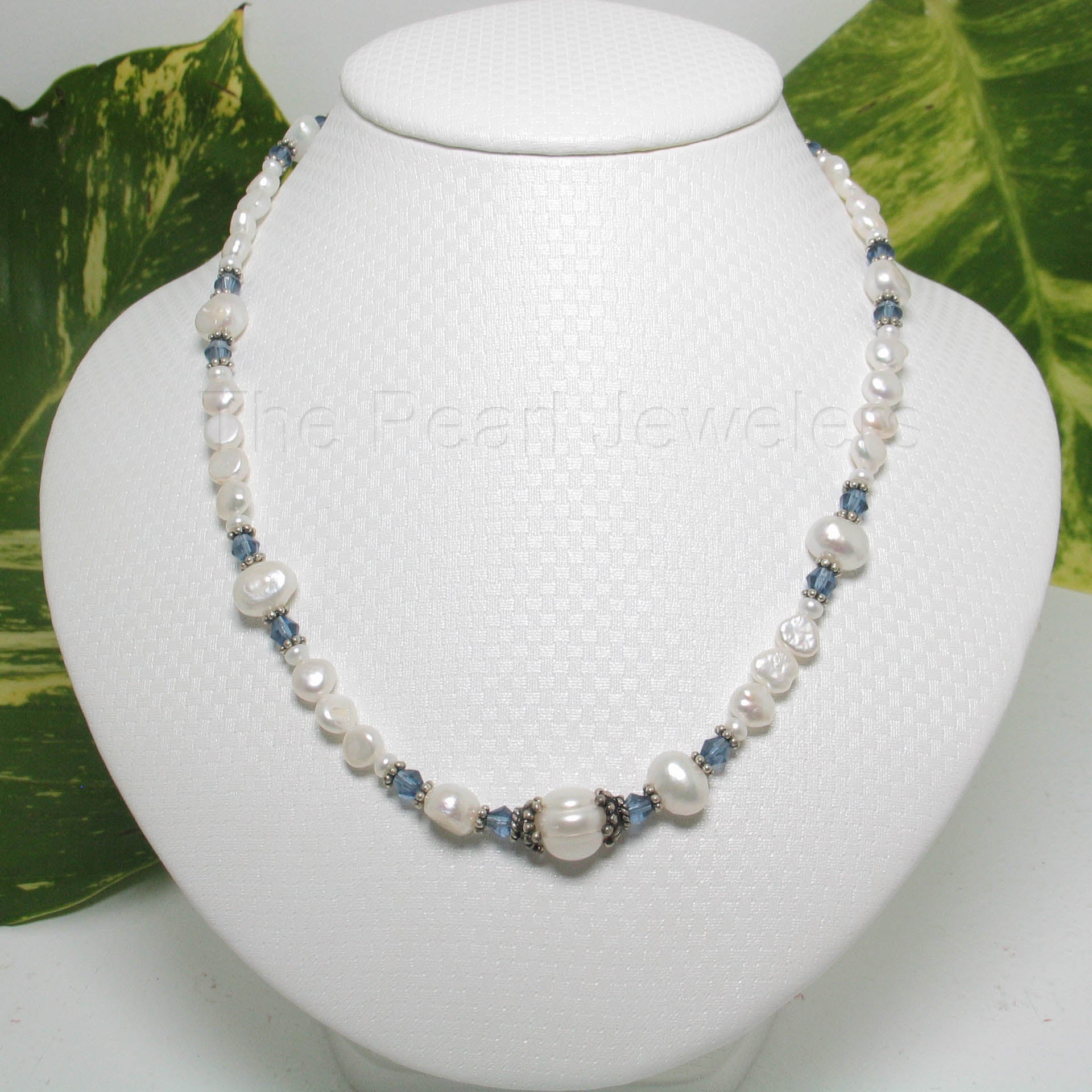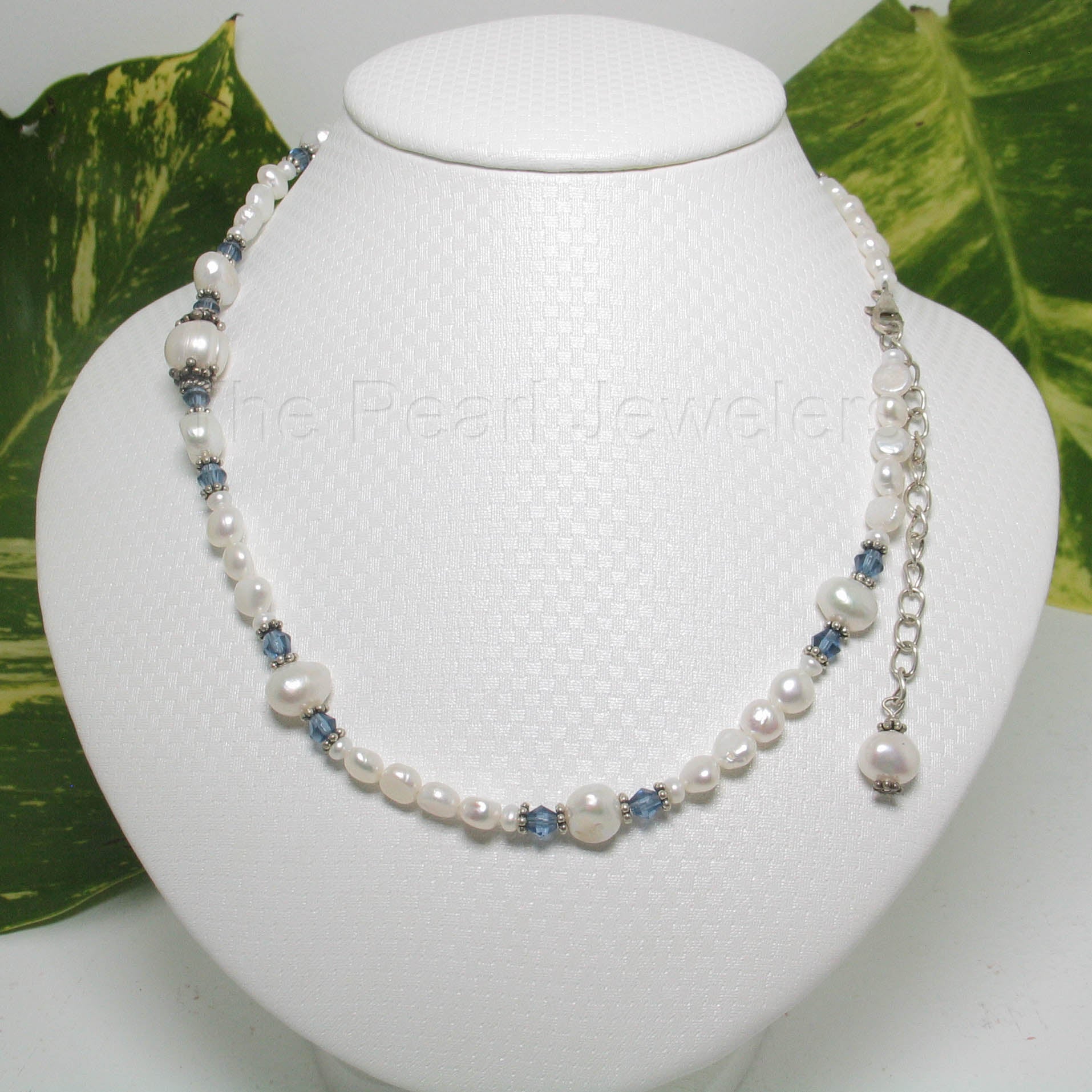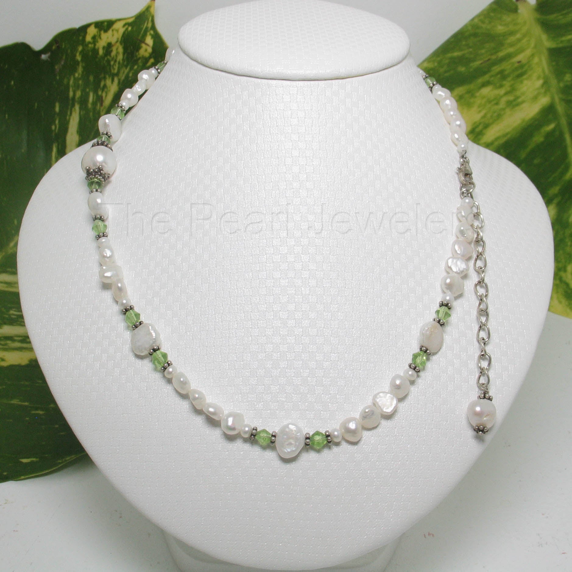 π A radiant mix of colored glass crystals with lustrous white pearls.